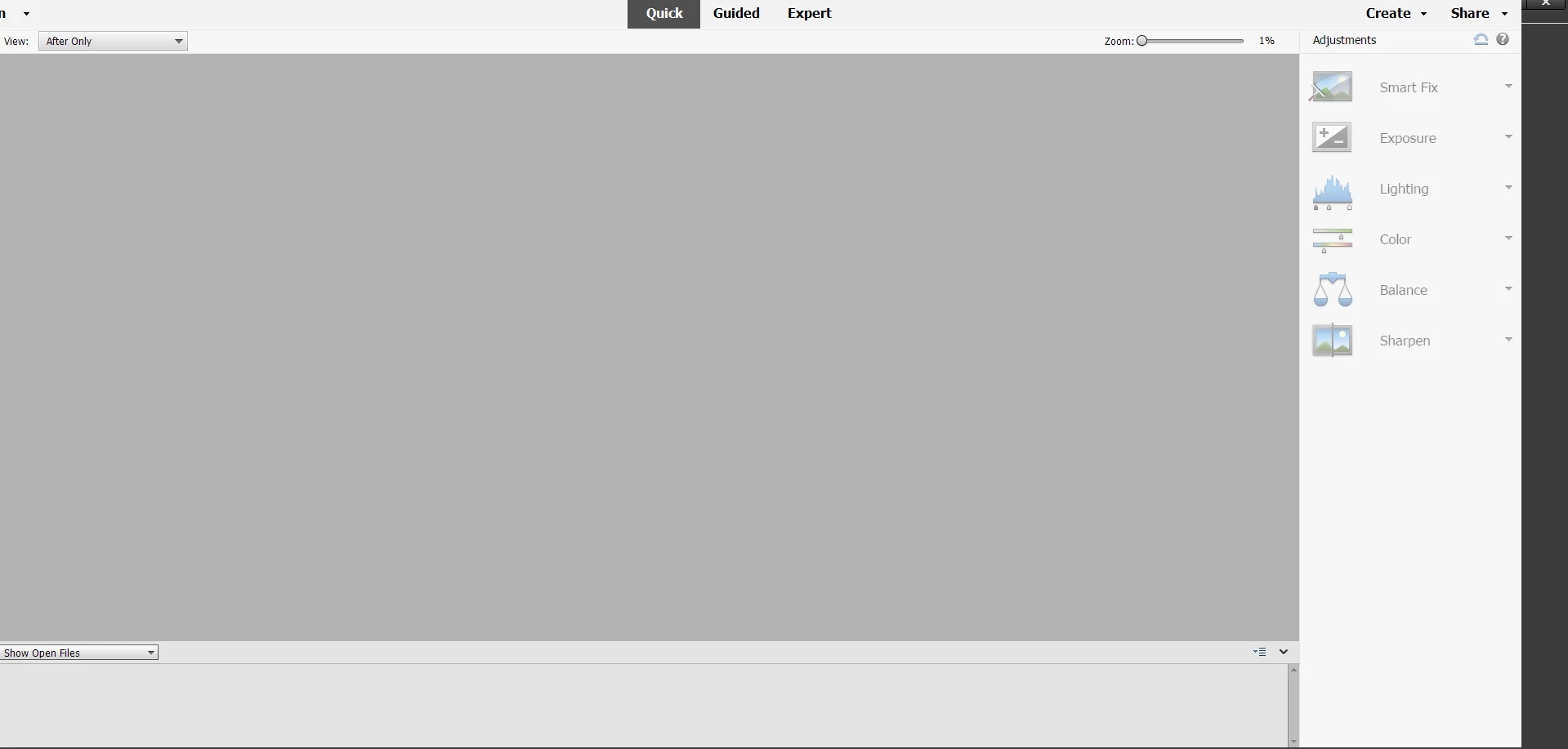 Photoshop Elements 2023 photo edit screen does not open fully on screen; selection menu is off screen on the left side. I tried various solutions I found on Google. None of them worked.