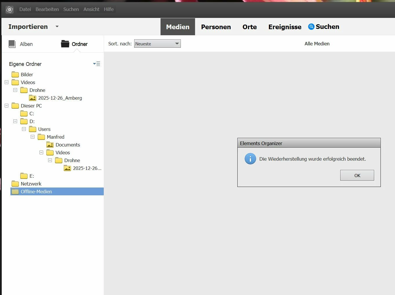 Von PSE 2019 habe ich ein Backup auf eine externe HD erstellt, um die mit PSE 2023 zu importieren. Restore funktioniert insofern, als es die Bilder und Videos in alter Struktur anlegt. Damit bin ich einverstanden, es sind auch die Datei-Daten korrekt übernommen worden.
