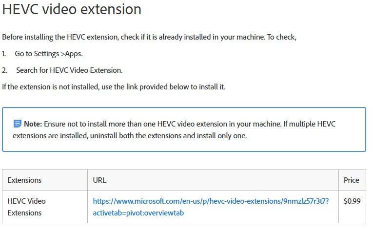 Both HEIF and HEVC extentions are installed.