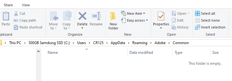 Delete all files in the Media Cache - Adobe "Common" folder