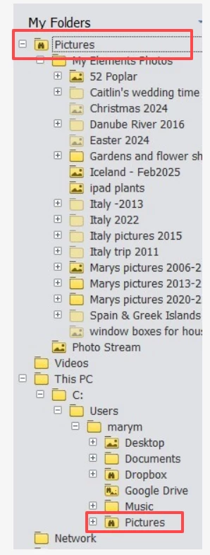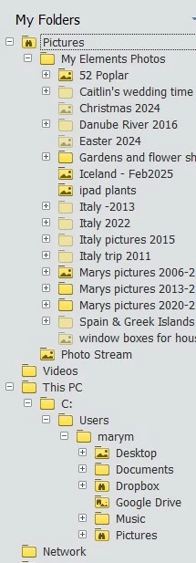 Downloaded the new photoshop. I want to install my pictures and tree structure into the new version from photoshop elements 2020 (version 18). I have 2 catalogs in my 2020 photoshop that I want to transfer to the new one. I did the backup from the old and restore it in the new but my organization structure didnt come over. It came over with all the folders. I have windows 11 on a G3 3590 dell computer. Am I better off copy and paste from the c drive the catalogs? (see below a picture of my picture layout)
