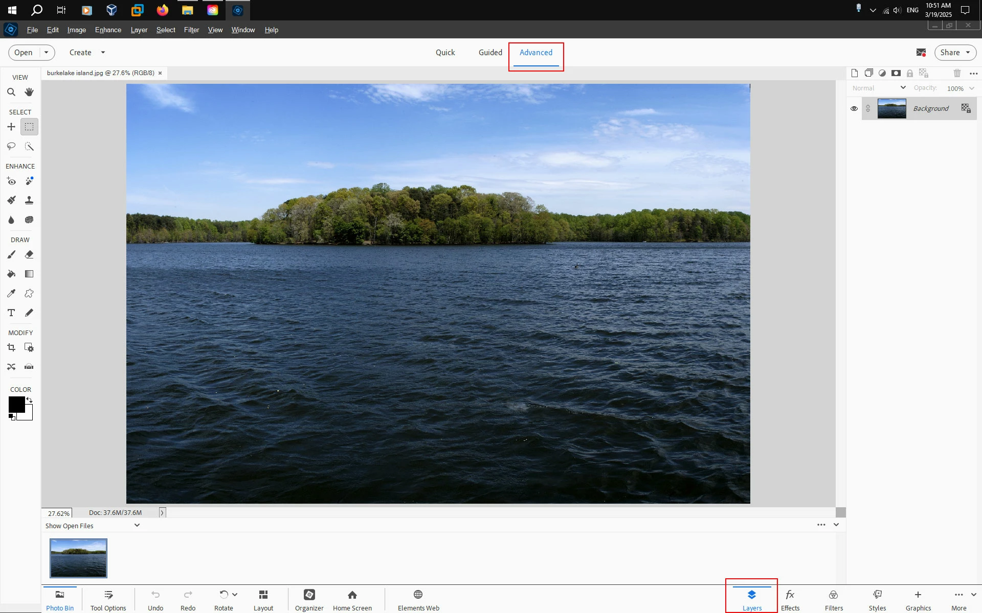 After you open the PSE 2025 Editor click on Advanced and then in the bottom right you can click on Layers to show the Layers panel.