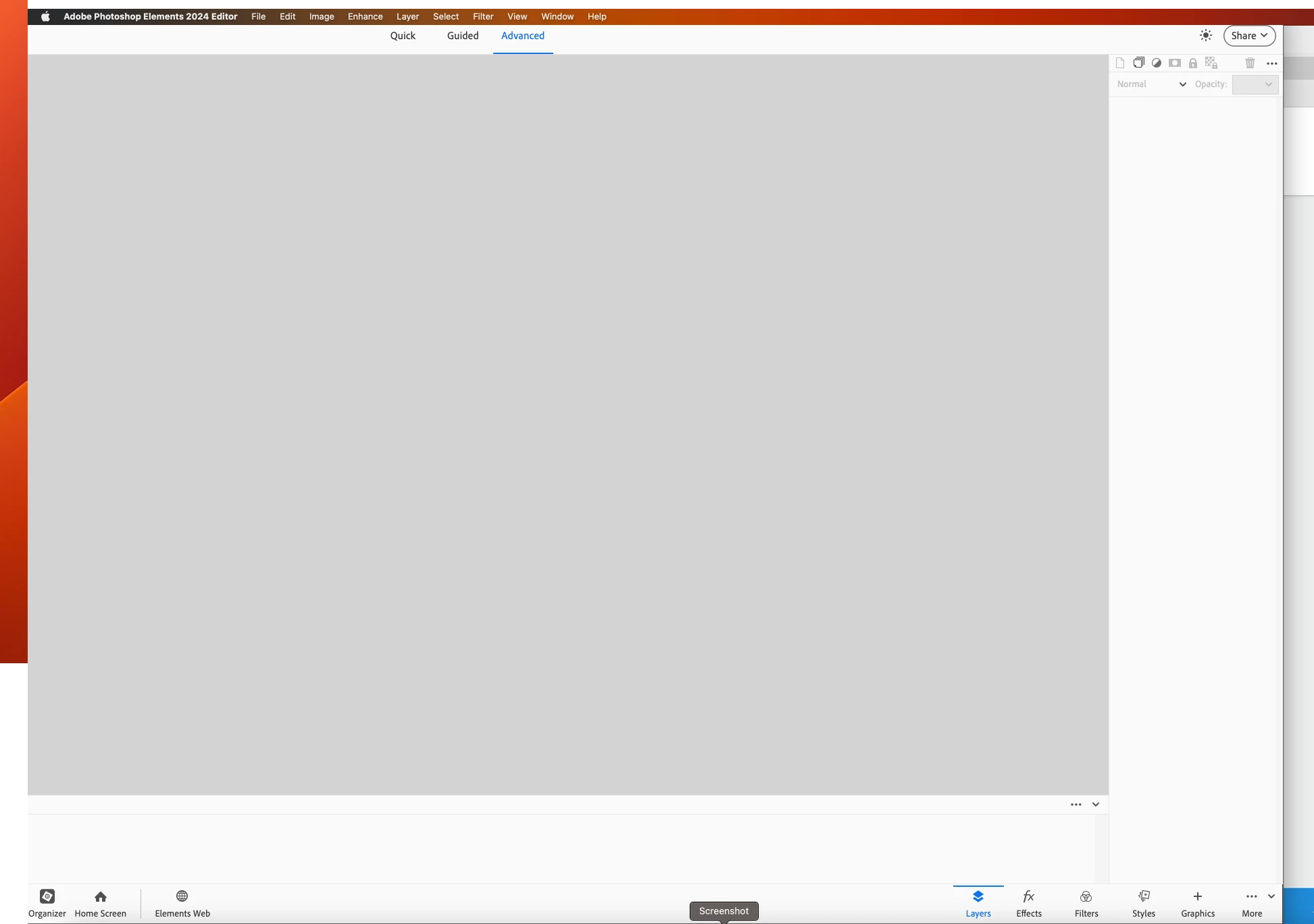 Photoshop Elements 23 and 24 Mac home screen is off screen to left & can't be moved;