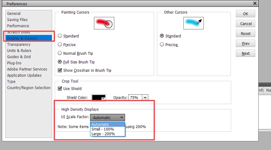 Menus de photoShop éléments trop petits