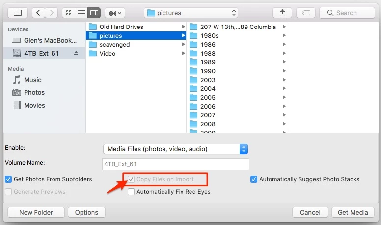 Photoshop Elements Organizer 15 "Copy Files on Import" is checked and grayed out