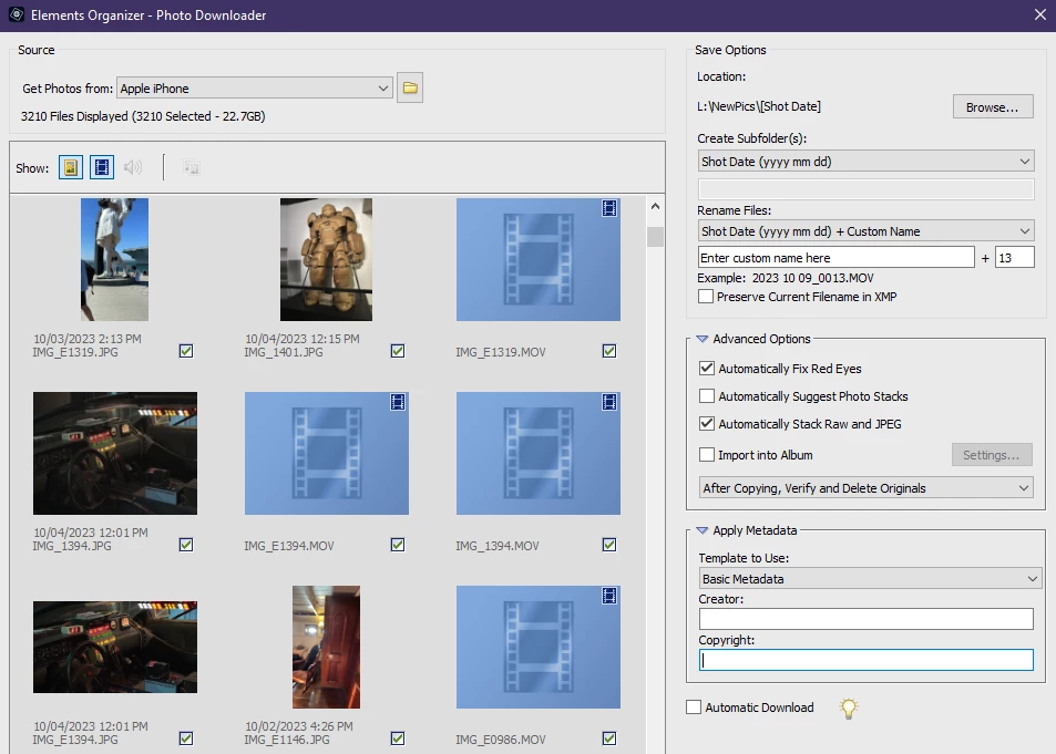 Hello, I took over 1k photos on a recent vacation, and spent a lot of time in my iPhone's Photos app fixing and enhacing the photos. Now I find that downloading them to my computer is impossible with Elements Organizer because it auto-sorts based on modified date, when it should sort by date created or date taken - or allow the user to choose. I don't see a screen selection for sorting, so is there a way to change this in settings / preferences?