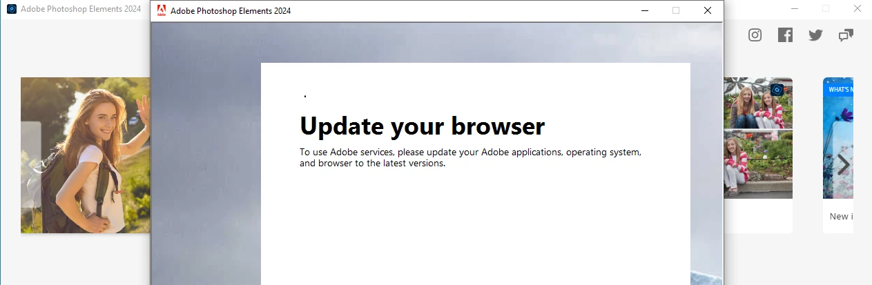 Photoshop Elements (PSE) 2024 Cannot Activatee / Sign-In / Brower Update Issue