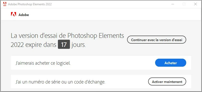 Photoshop Elements redemande le "code série" à chaque fois qu'il est démarré