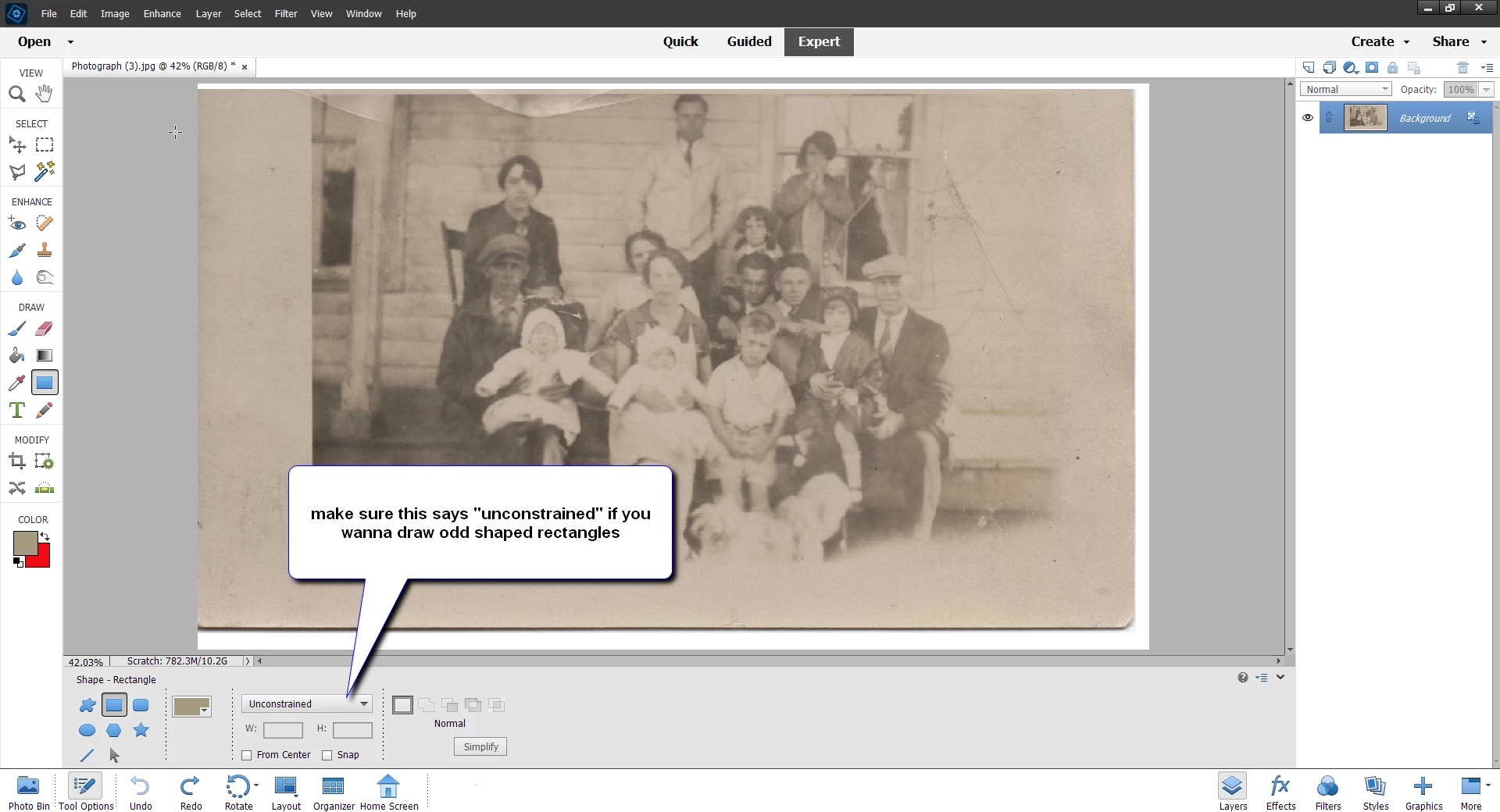 I would like to emphasize a certain spot on a picture by drawing a transparent rectangle with red borders around it. I cannot find how to make the rectangle completely transparent without also making the borders transparent. Also, I find it difficult to be able to change the borders. Any tips on how to make this work? Thank you. As I am a beginner, please be very clear (dummy language) in your explanation. Thank you.