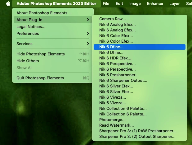 Back in time I've used the old Photoshop Elements (32-bit v9) on an old Mac for long, but some years ago I switched to newer (64-bit edition version 21). Now I run Photoshop Elements this along with some very good plug-ins called Nik Collection (from DxOLabs) – all on top of macOS 12.7.1. As long as I used Nik Collection 6.0 everything worked fine. But when I upgraded Nik Collection from 6.0 to 6.3, some things started going wrong 😞 Suddely, the Nik tool «Dfine» wouldn’t open RAW files any more, rether it insisted on being "fed" with JPEGs only!