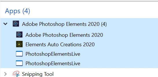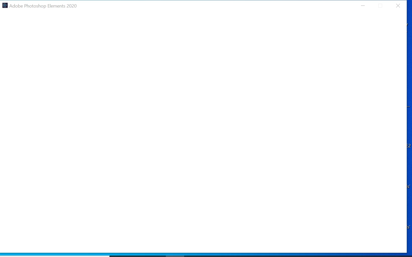 I was just working on Photoshop Elements 2020, when I went to close out it had an update. So I updated; but it failed. Then I tried to open Photoshop Elements again and just a blank screen appears; see attachment. I tried rebooting the computer but nothing; just this blank screen. And now when I try to open it, I get "do you want to allow this app to make changes to your device - Elements Organizer 2019" ????? Also, when I have the blank screen open, I open task manager and it shows four apps open (Adobe Photoshop Elements 2020; Elements Auto Creation 2020 (?); and two PhotoshopElementsLive (see attachment). When I try to "end task" on a PhotoShopElementsLive, a line shows up on the blank screen "chromewebdata" (again see attachment). Please help! I need to use PSE, but it won't open. I am using Windows 10 and tried rebooting.