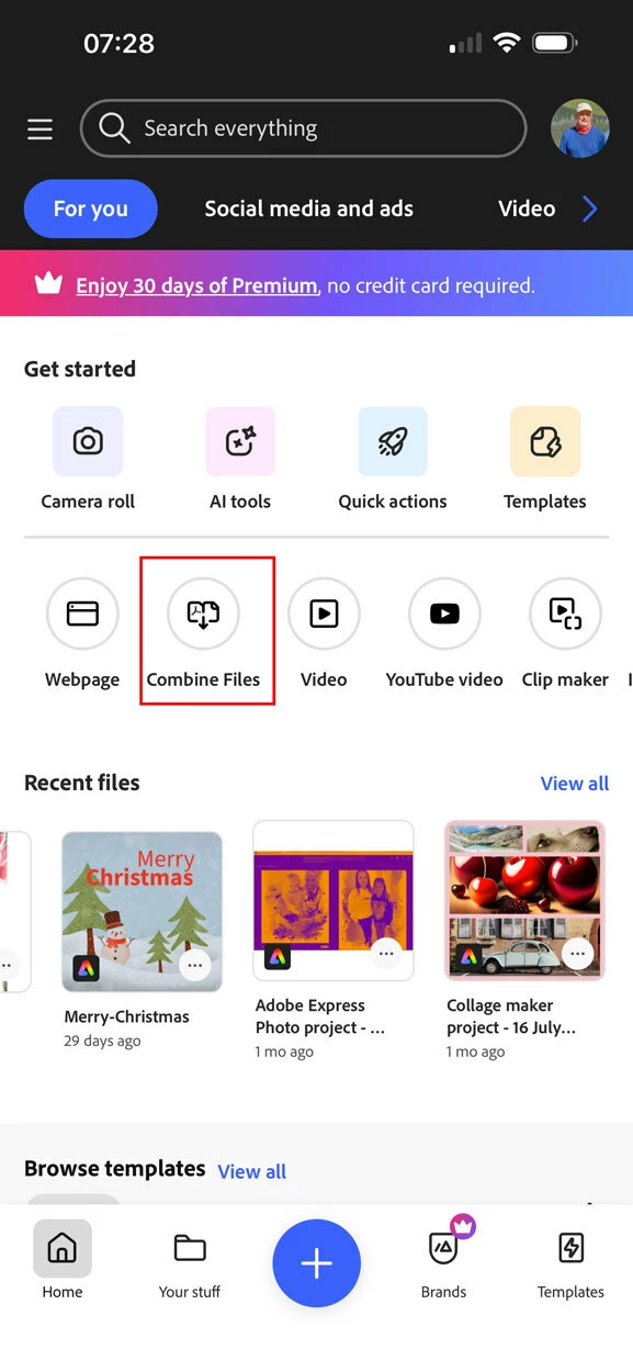 Photoshop Express not showing the Combine Photos funcitonality