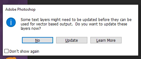 Photoshop Text Layer Might Need to be updated bug?