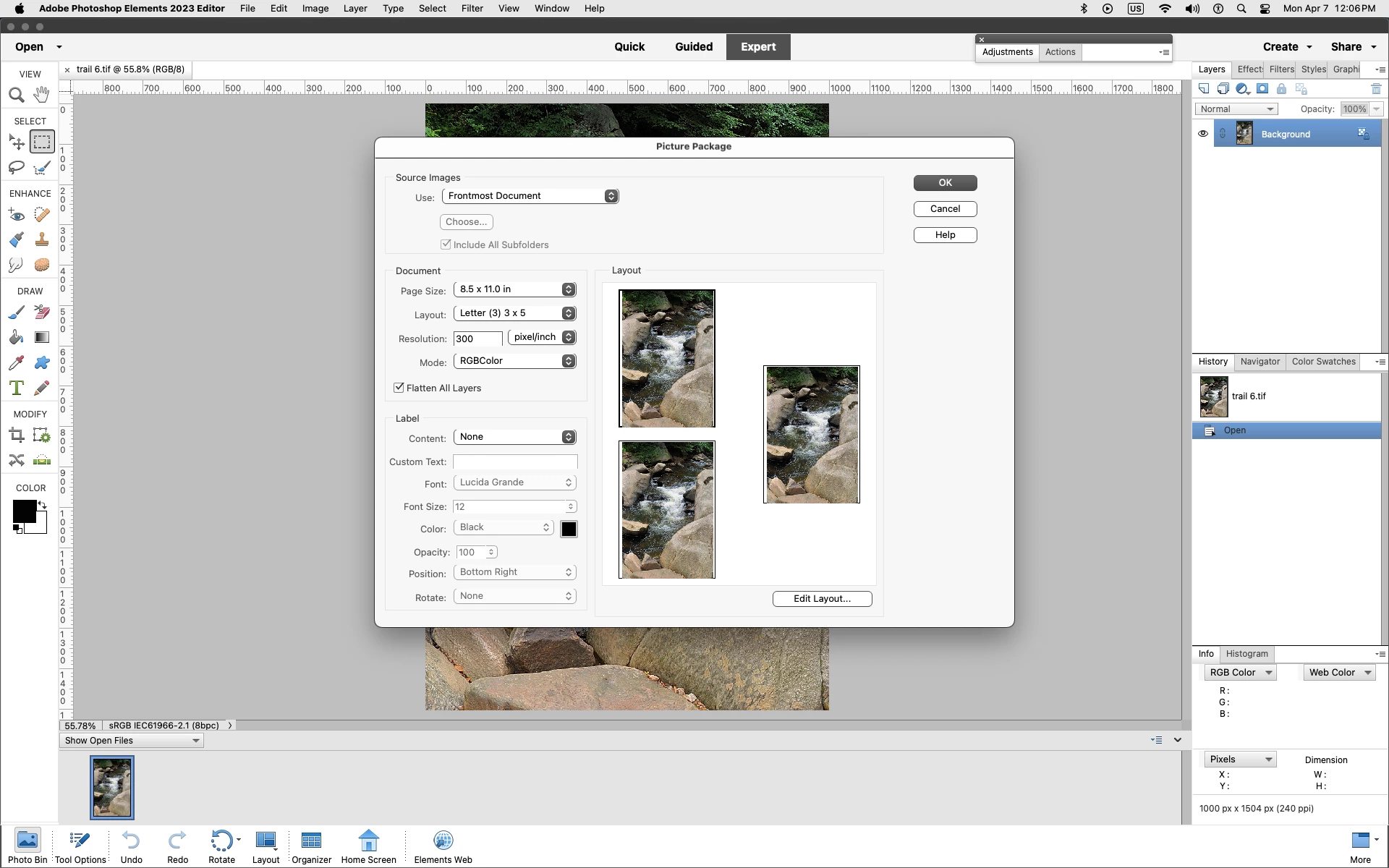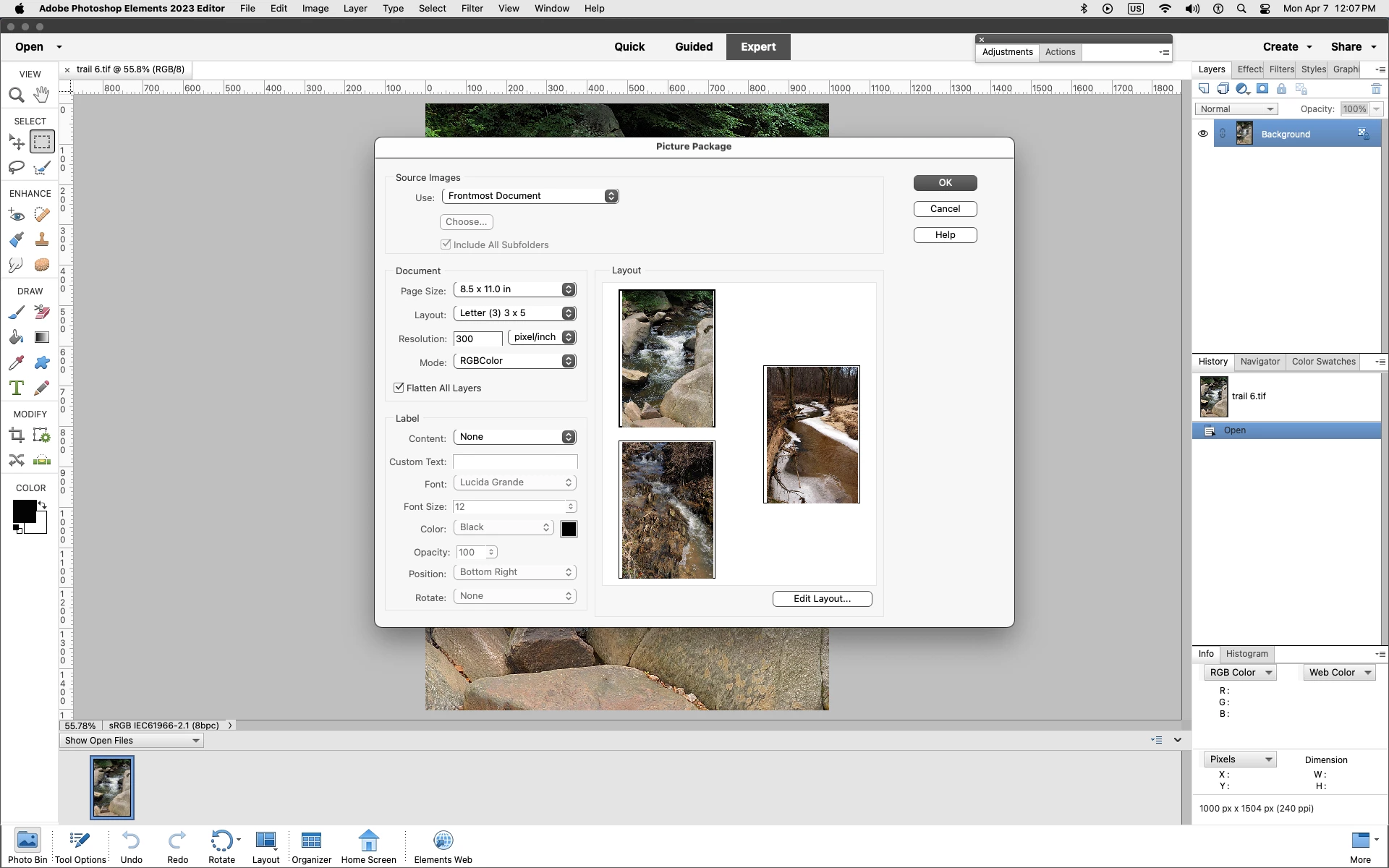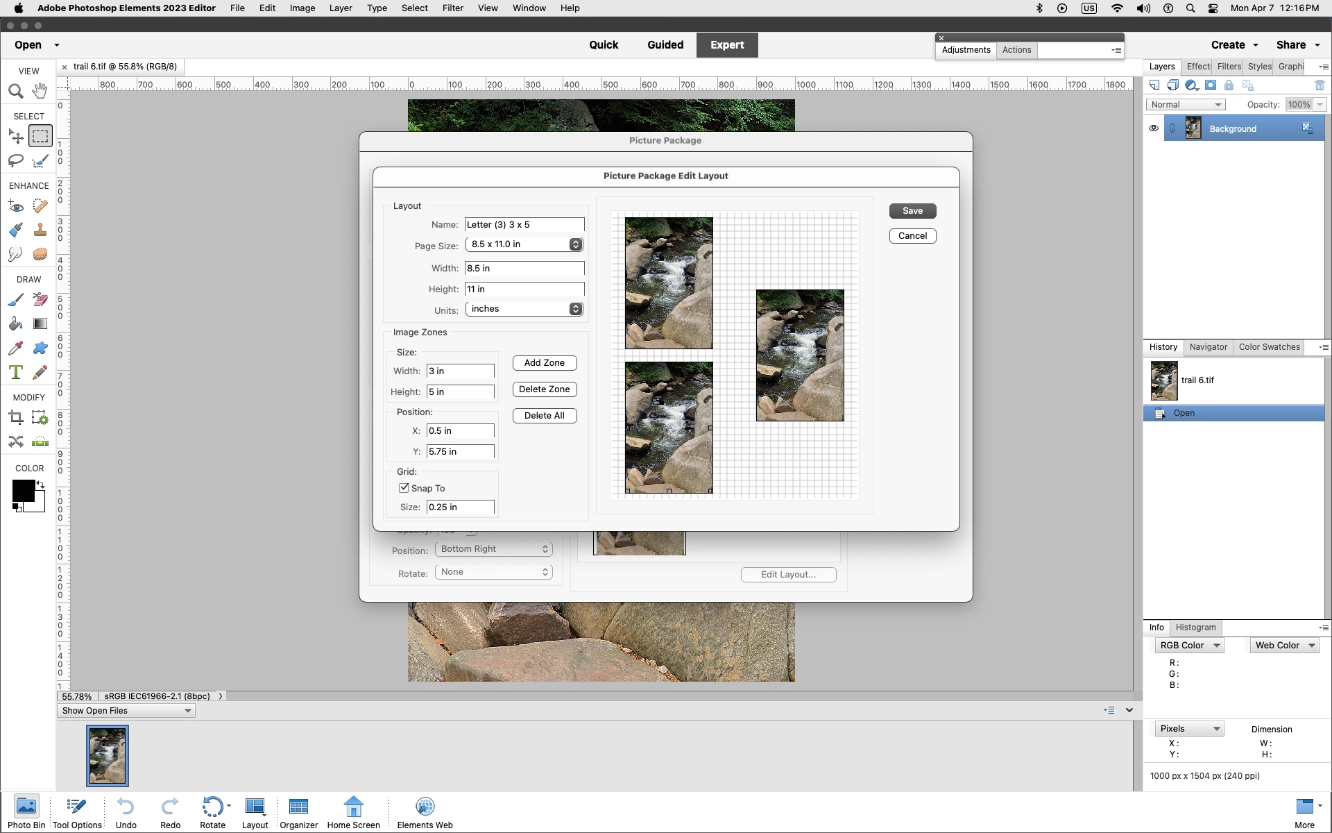 I am using Elements 2023 on MacBook Sequoia 15.3.2. Picture package does not offer paper size 8.5 x 11. Nor does it offer templates for printing multiple pictures on one sheet of paper, for example, 3 3 x 5. Any ideas ?