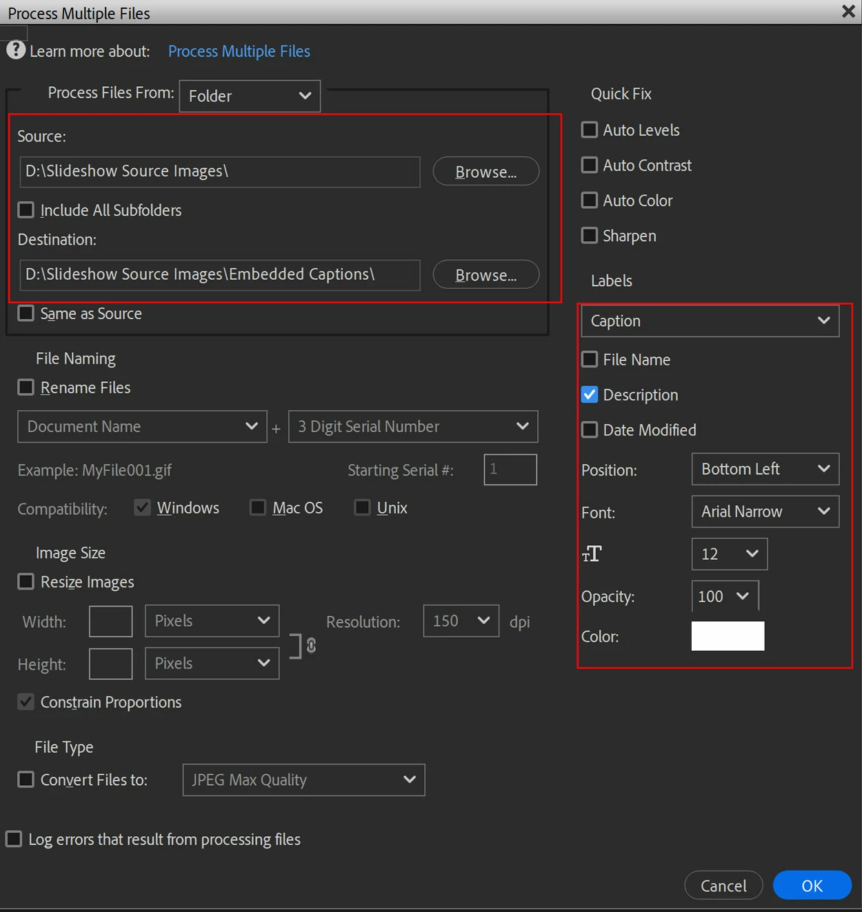 Placement of captions in Organizer