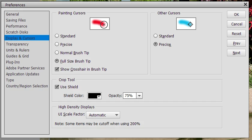 How can I change the color of the pointer in Photoshop Elements 2021 ? I can't see him when I work with light colors so I want to change him in black instead of gray.