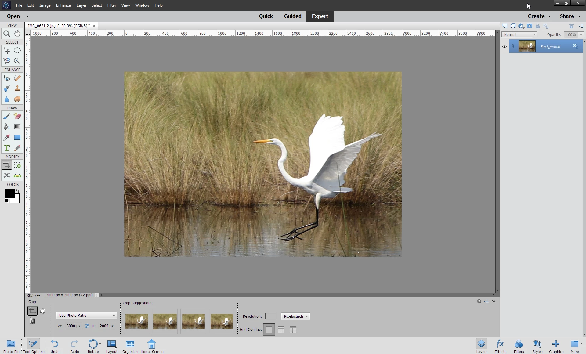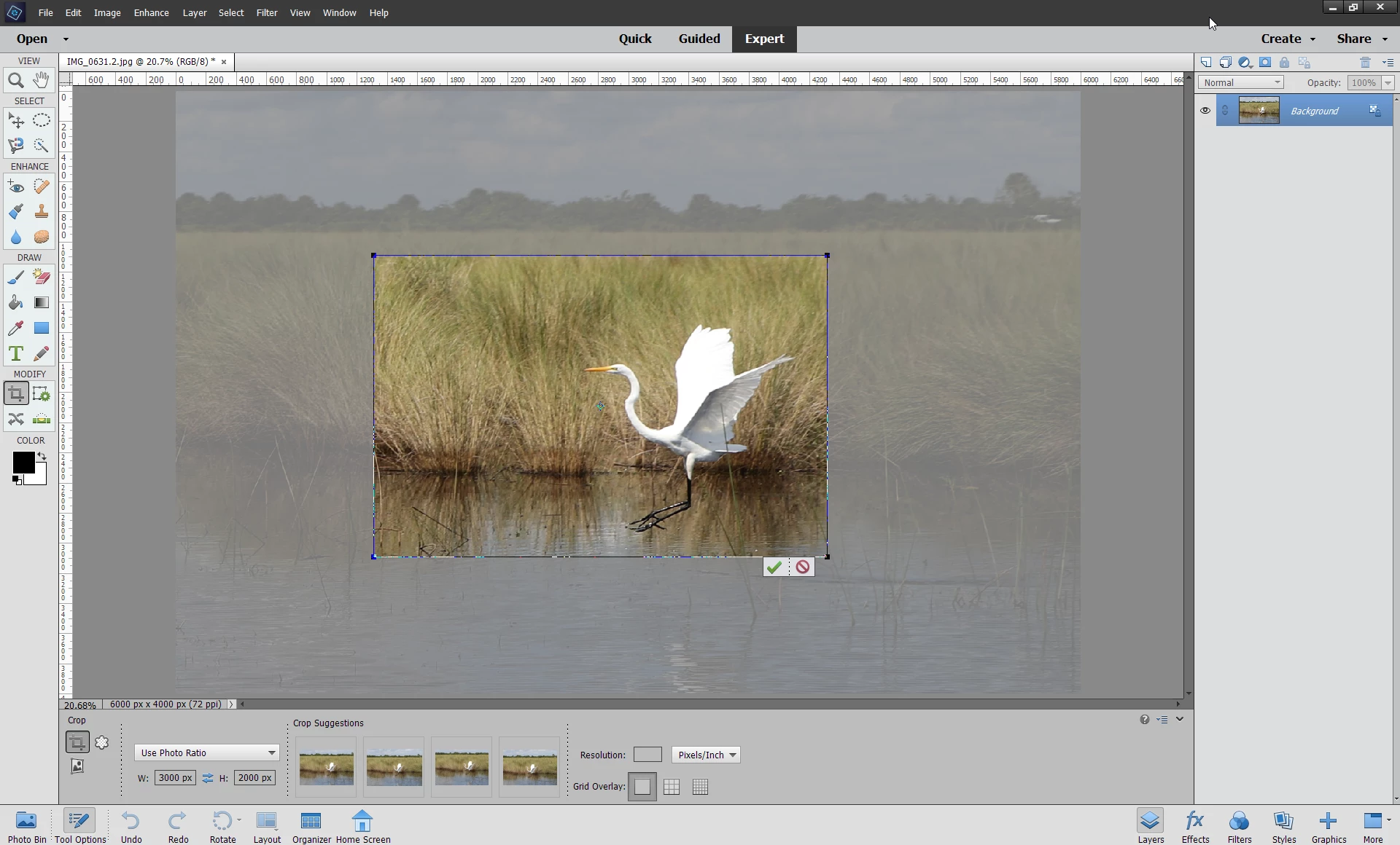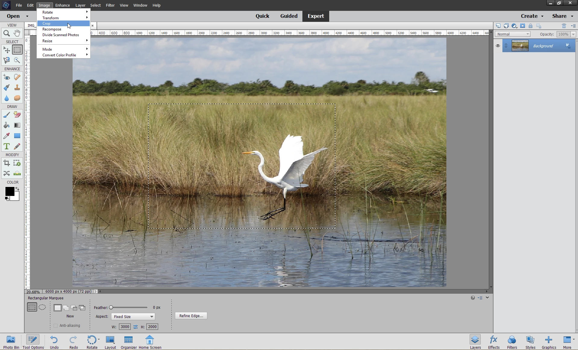 When I make a 25% crop of an image of 6000 x 4000 PS Elements makes the new image still 6000 x 4000 in stead of 3000 x 2000. Ps Elements is recalculating to the original pixels and I don't want PSE to do that!