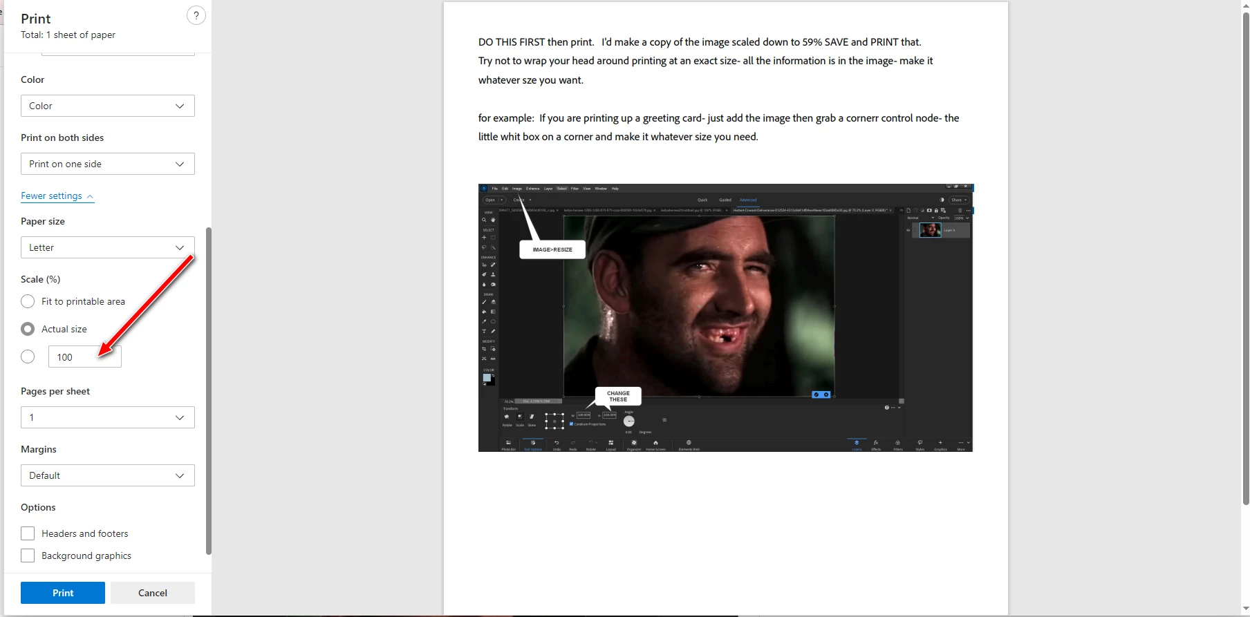 Can someone PLEASE explain how to print an image at a specific percentage - i.e. 59%? I have seached high and low to find a dialog box in PSE that offers a field where you can fill in the percentage rather than the desired dimensions- no luck.