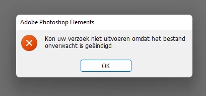 Probleem met oproepen van editor in Photoshop Elements 2020