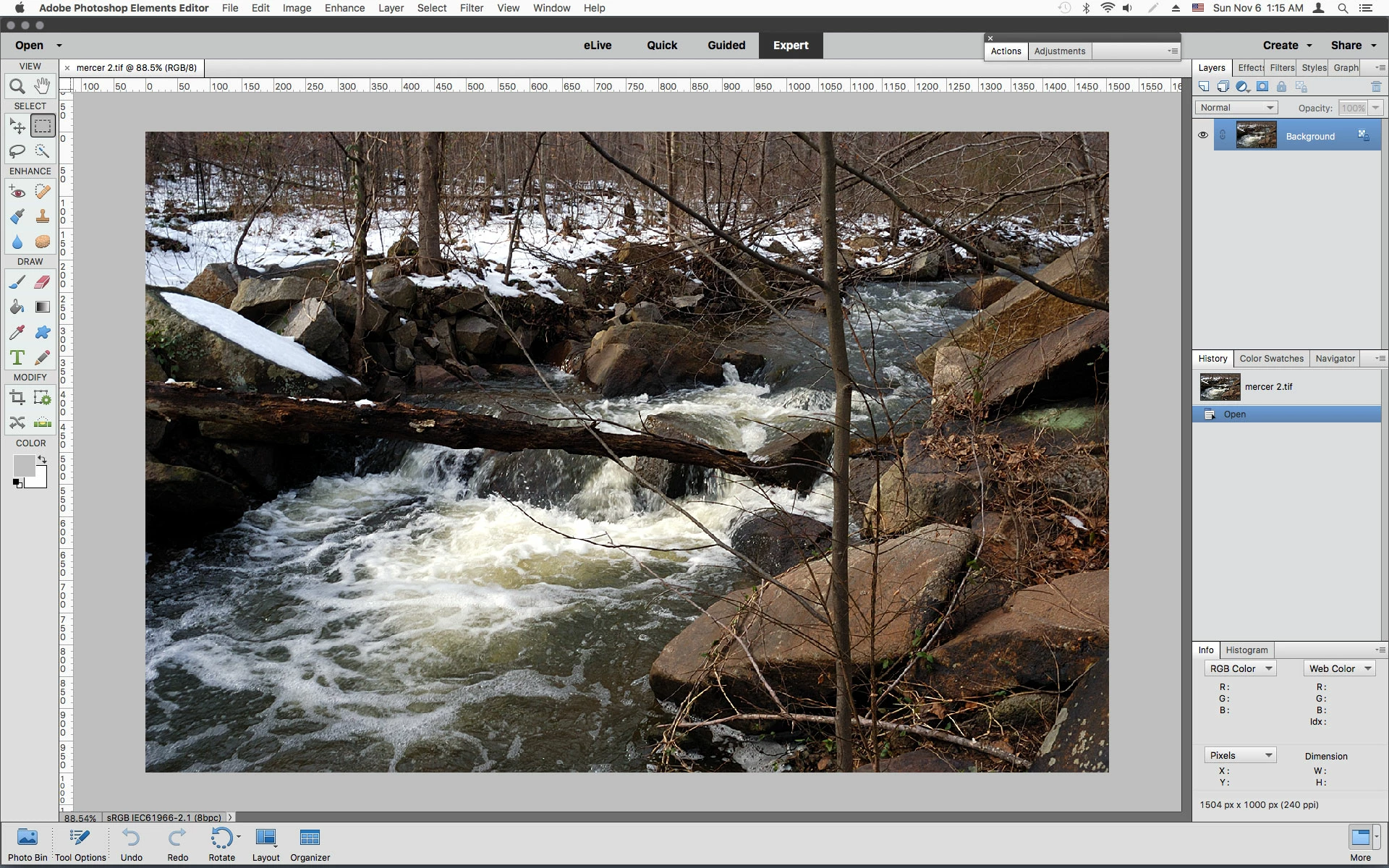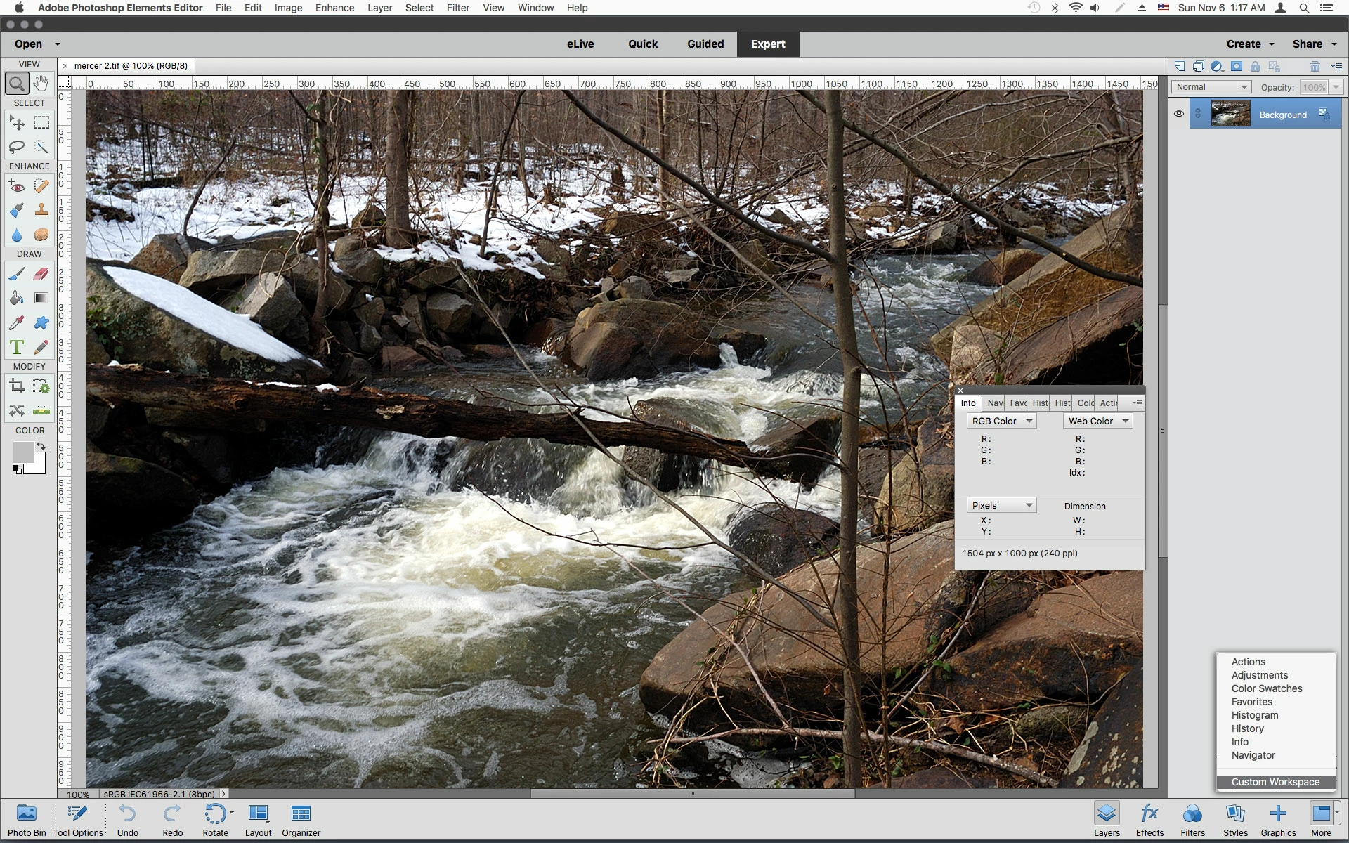 I have upgraded from Elements 13 to 15. I am using iMac OS Sierra 10.12.1. In Elements 13 I was able to move a panel until a blue line appeared showing new location for the panel. In version 15, whatever I do , no blue line appears allowing me to re-position the panel. For example, I want to locate the Color Swatches panel next to the Layers panel, which I could easily do in Elements 13. In 15,the panel just remains floating rather than properly sitting in a new location. It sits over my working space hiding part of it. If it was properly located by using the blue line method it would sit next to my workspace rather than floating on top of it. The Elements User Manuals say's ' To dock panels together (stacked panels), drag a tab of the panel or the title bar to the bottom of another panel. A double line appears at the bottom of the target panel when the pointer is over the correct area". This does not seem to be happening in Elements 15.