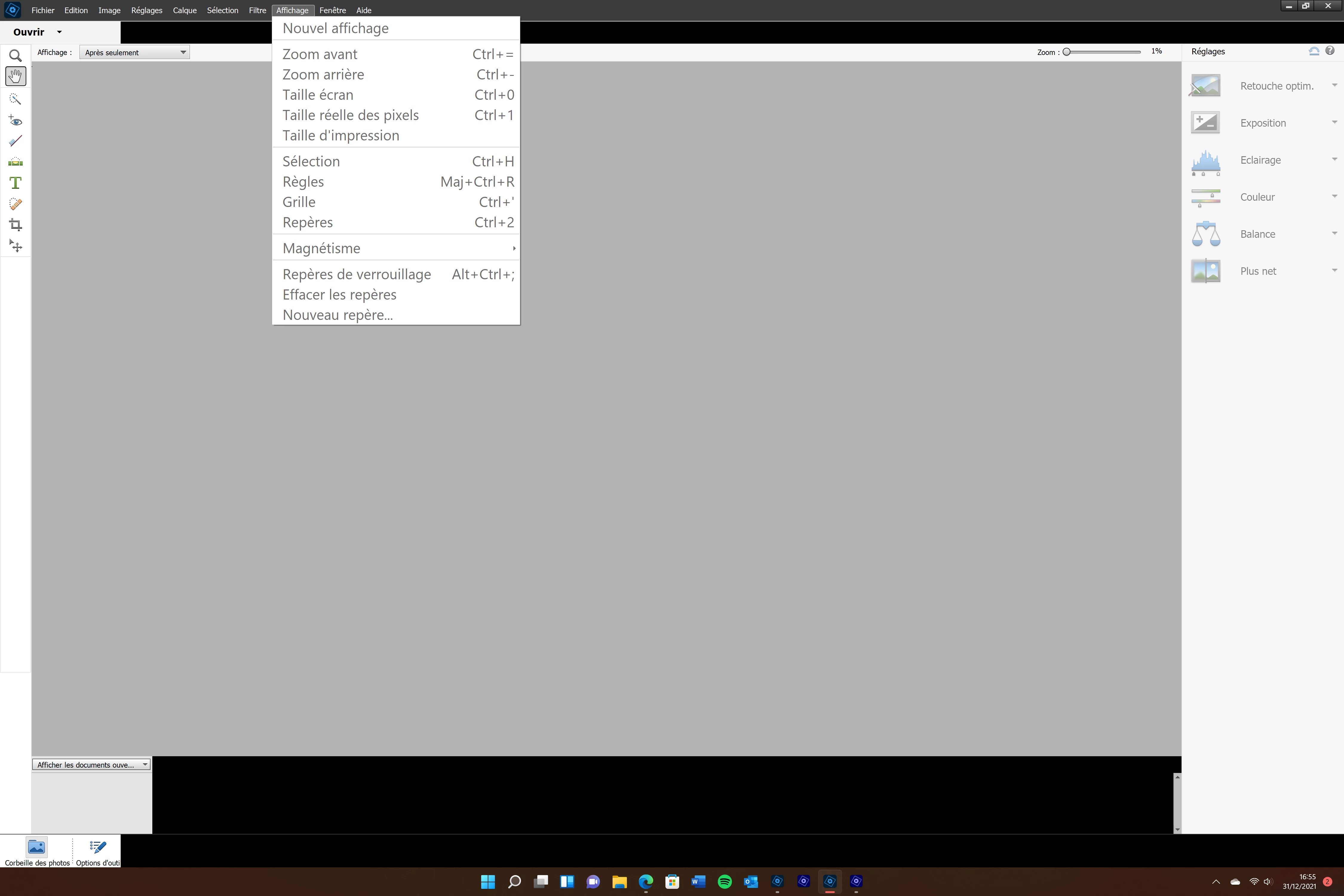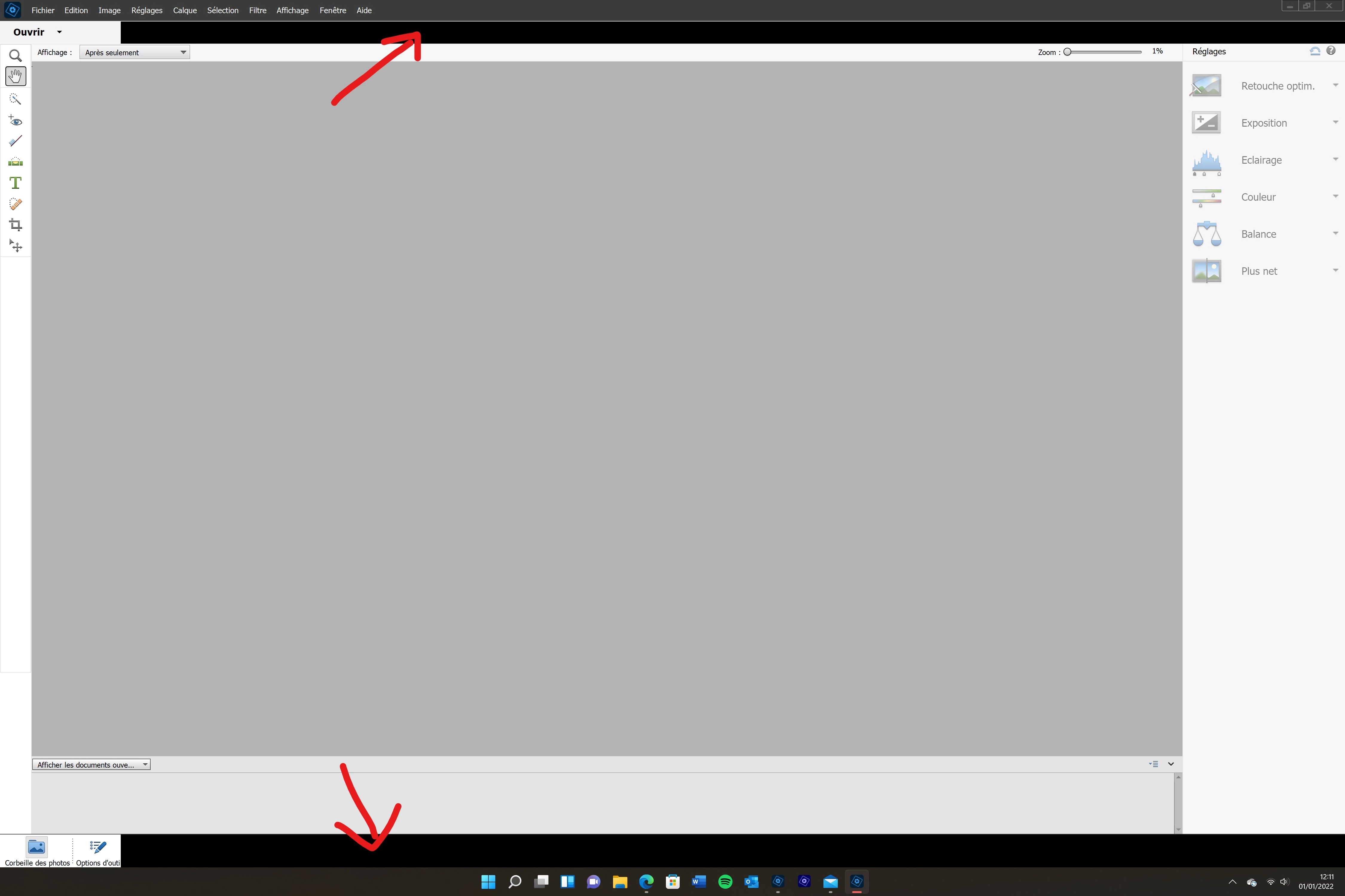 Je rencontre des problèmes d'affichage dans Photoshop Elements 2022. Comme vous pouvez vous en apercevoir, certains éléments sont dans le noir !