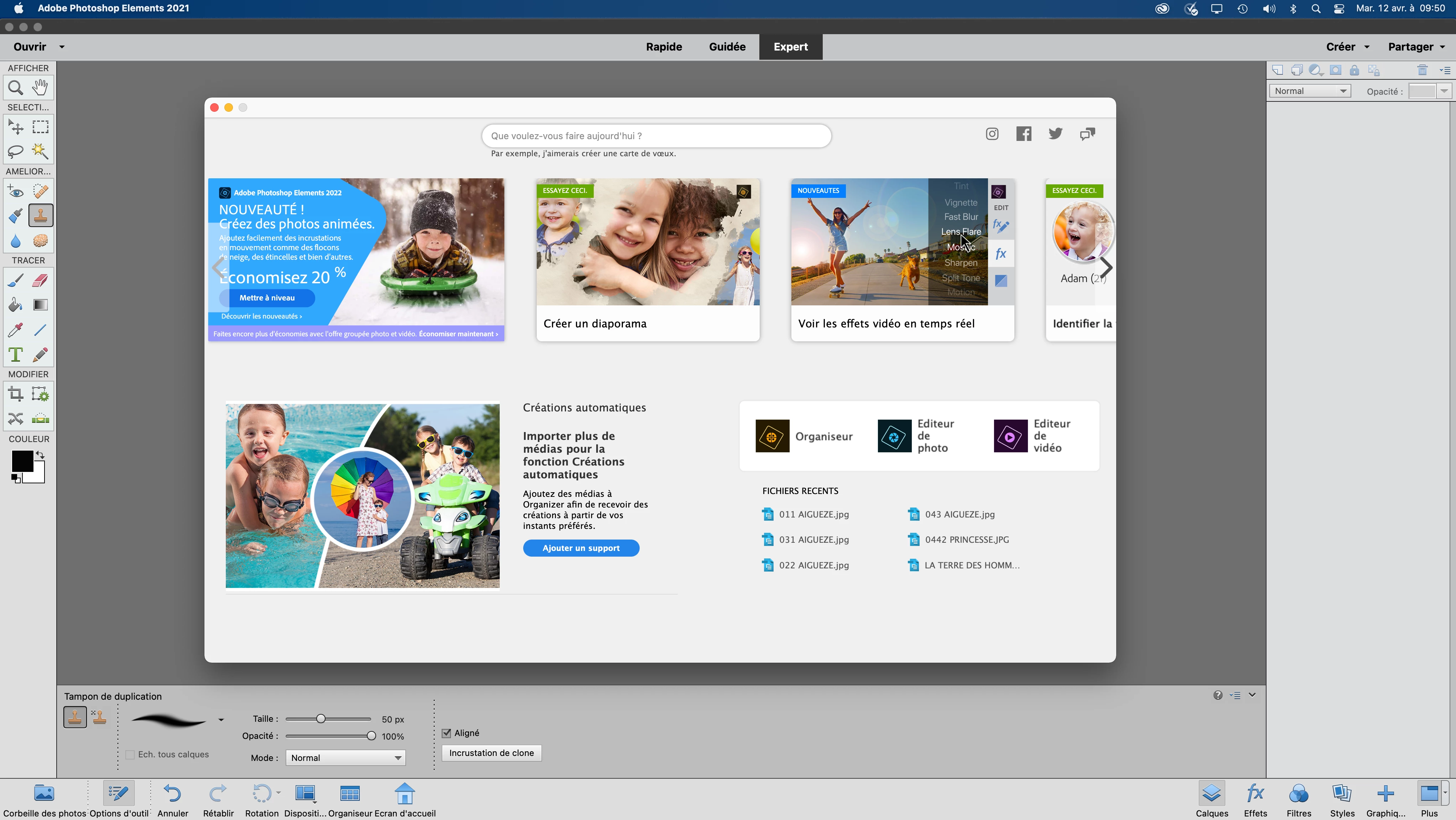 Sur mon iMac 27 pouces de 2020 avec Monterey 12.2.1, j'ai Photoshop Elements 21.