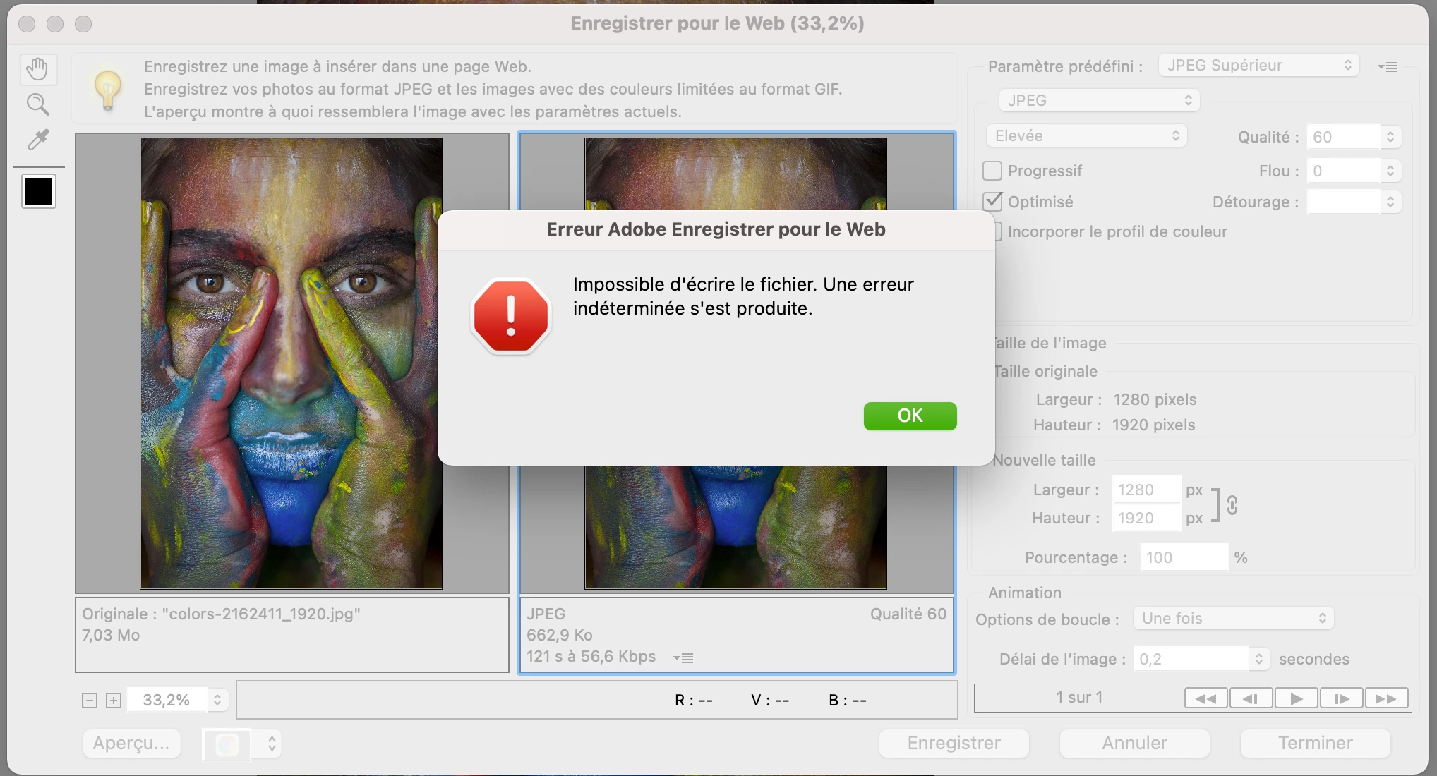 Je viens d'acheter Photoshop element 2021 qui refuse d'enregistrer pour le Web des images, quel que soit le format Gif, jpeg, etc.