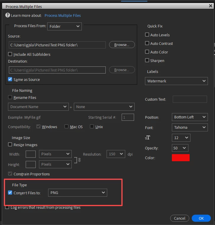 I'm currently using Photoshop Elements 2024 on Windows 11, and I have a problem with "Process multiple files". I want to simply resize some PNG files with transparent background, but even if I check that the format is correct (PNG in the file type menu), the batch processing add them a white background... Why?