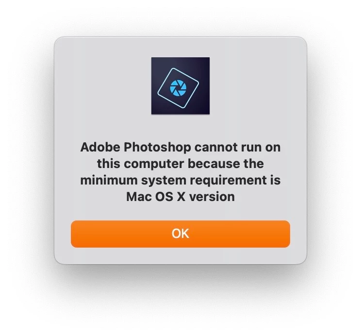 Heres a strange one. Suddenly - not aware of any recent updates or events - I cannot open PS Elements 2020 on my Intel iMac running OS12.4. It just says: "Adobe Photoshop cannot run on this computer because the minimum system requirement is Mac OS X version ". (and no version number is shown on the message). Yet it had been working a couple of days before.