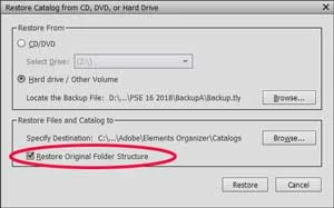 I had PSE 2018 running with no problem and had done a recent full backup of my catalog. Then my computer crashed. To fix it, Windows 10 needed to be re-installed. All of my documents, including photos, are still on my computer's C-Drive, but I needed to re-install all software, including PSE 2018. During the installation process, there was no dialog regarding locating My Catalog. When I opened Organizer, there were no images and it wanted to begin searching my computer for images. I assumed that this was starting the import process from scratch rather than locating My Catalog so I cancelled out of that process.