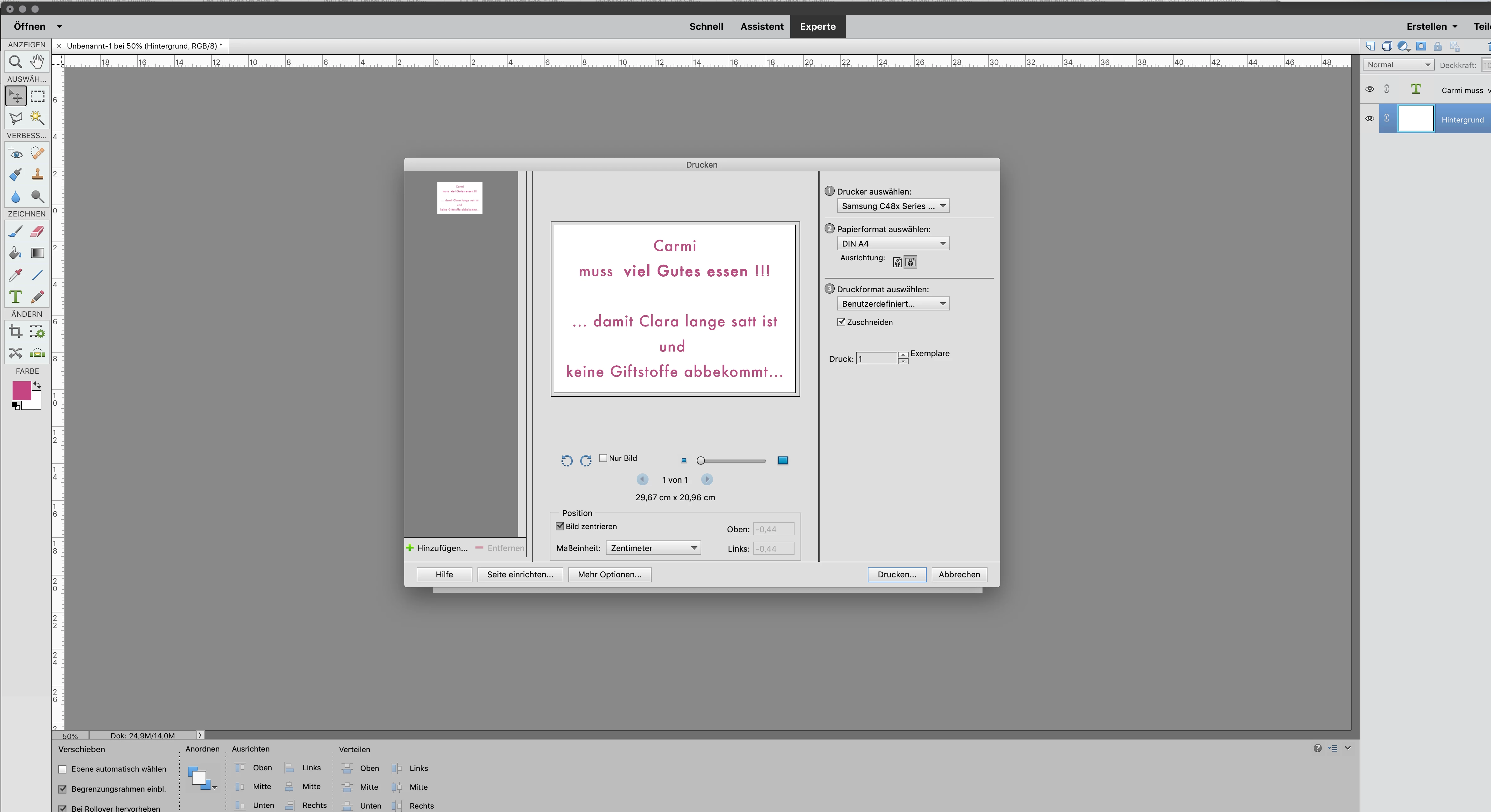PSE 2019 printer settings paper size // Druckereinstellungen A4 Querformat