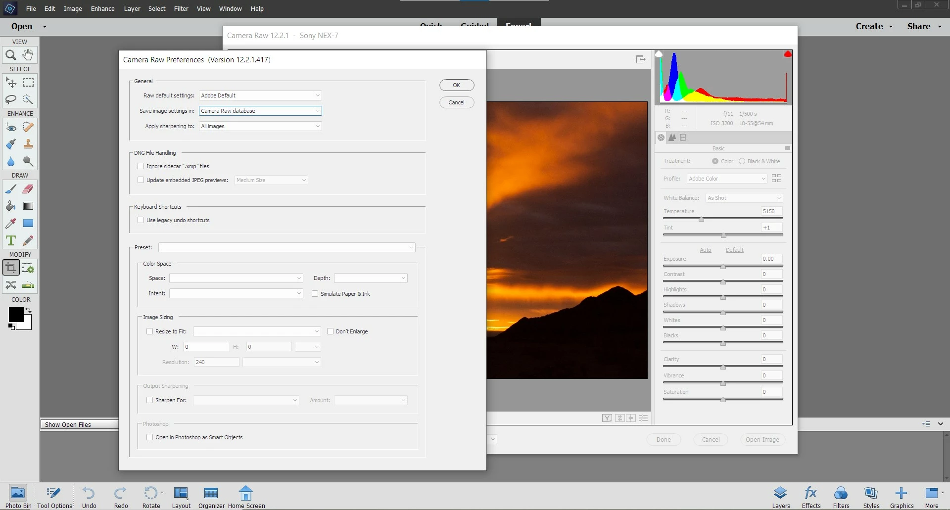 Here are some screenshots of Adobe Camera Raw 12.2.1 working in Adobe Photoshop Elements 2021: