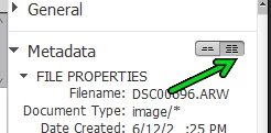 • All of a file's metadata is available in the Information panel. Click on the toggle next to the Metadata label to get the most detail: