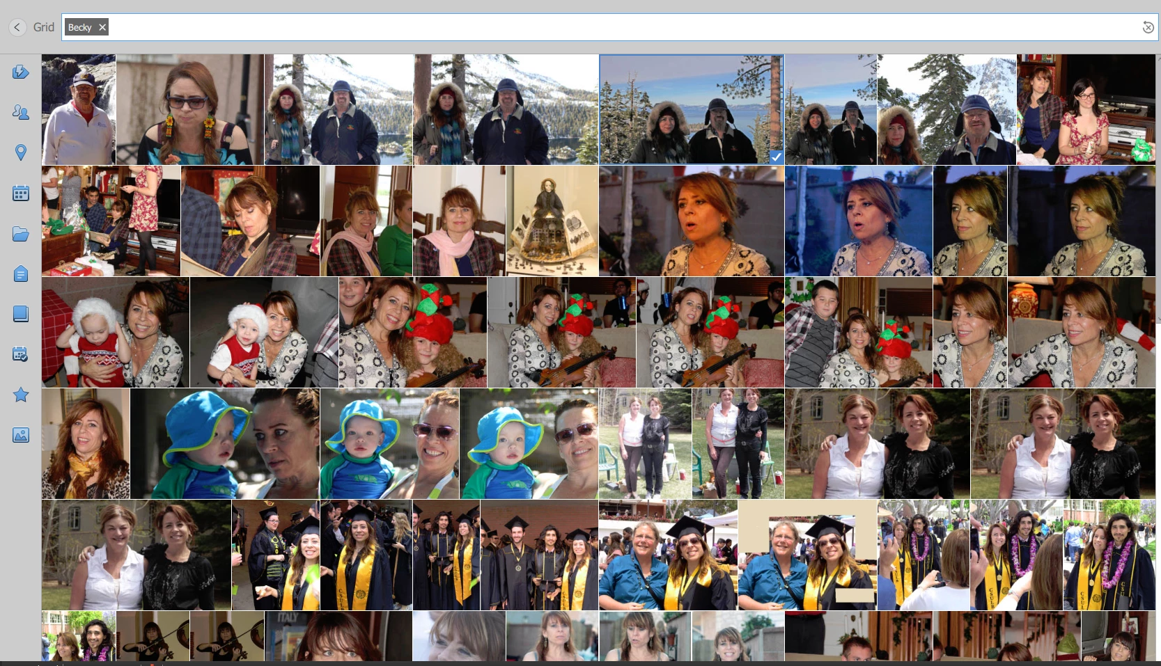 • If you have keyword or People tags attached to your photos, you can search for a particular person in the main grid by checking the box by the person's name.