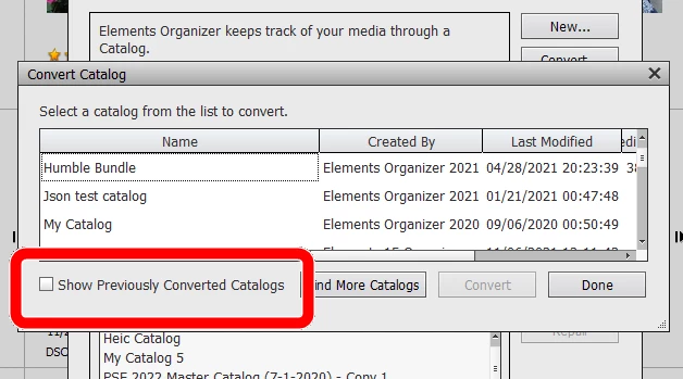 I installed PSE 2022 and let Organizer convert this catalog. Now, when I open it, all recent items (and I mean from 2015 and later), which are in the 2018 catalog, are NOT in the 2022 catalog.