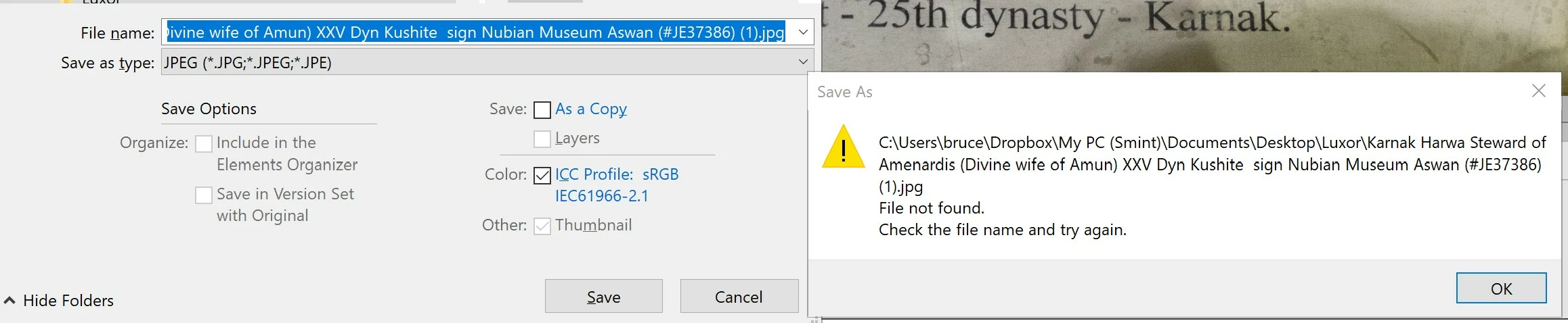 I've just upgraded to PSE 2022 and whenever I try to save a RAW file as a jpg, I get an error message telling me that '...file not found. Check the file file name and try again.' The system seems to default to a PSD file. I've searched the programme choices, forums, the internet and nothing can be found to resolve this issue. Anybody know what to do?