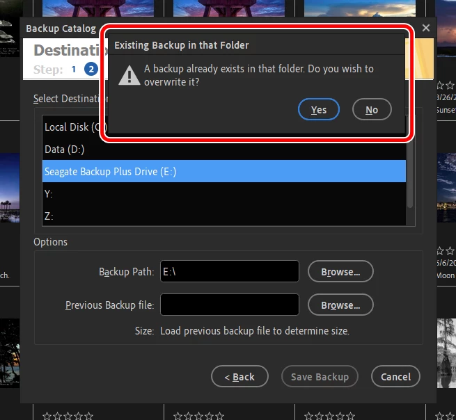 I just want to add new or modified photos since the last Full Backup. Do I answer Yes or No? If I answer No, I just get the prompt to select the path again.