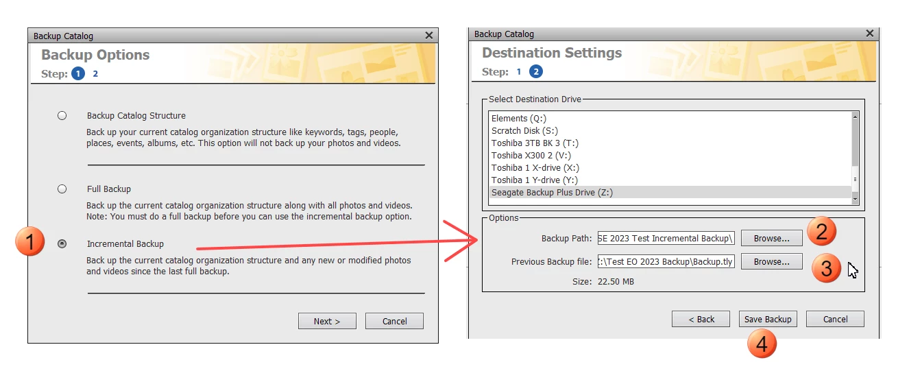 PSE 2024 Organizer Incremental Backup Procedure??