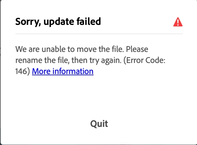 FATAL: Error (Code = 146) executing in command 'MoveFileCommand' for package: 'CoreSync-mul', version:4.3.45.2