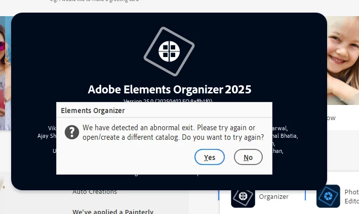 PSE 2025 Organizer will not load. Message is "abnormal exit"