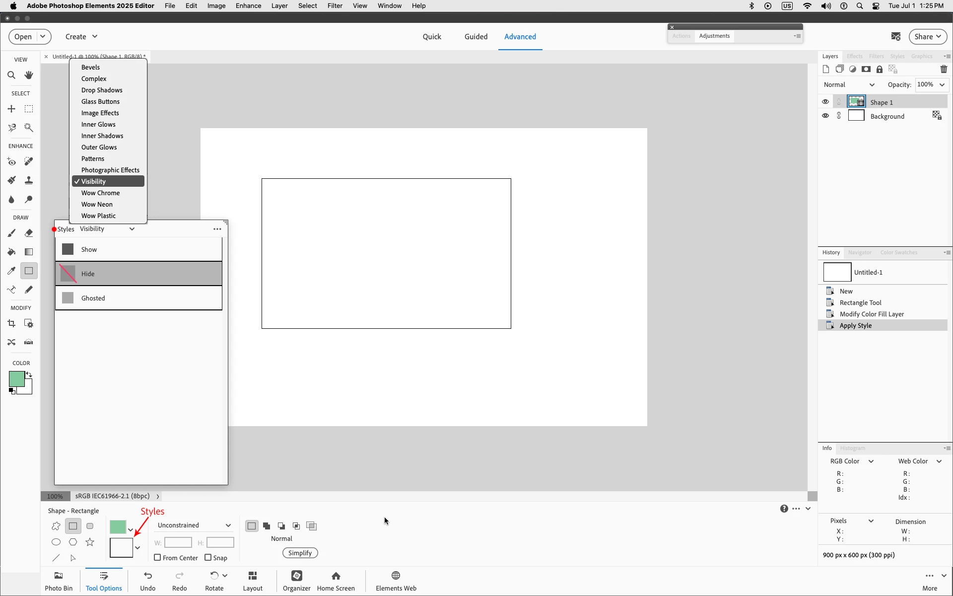 PSE 2025 - Rectangle Tool Visibility Option Missing