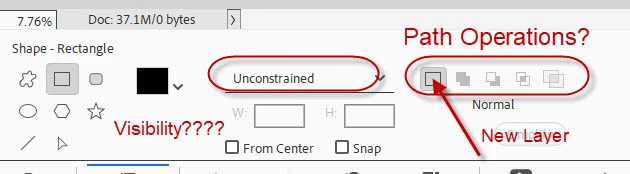 I used the Rectangle Tool Visibility option just fine 2 days ago. Now Visibility option is gone and I can't find it no way no how. This is the box with 3 options and a big red X in the middle box. This version of PSE is the most frustrating yet. "Things" disappear all the time and I spend hours finding what is now missing. The documentation is almost worthless to solve your own problem.