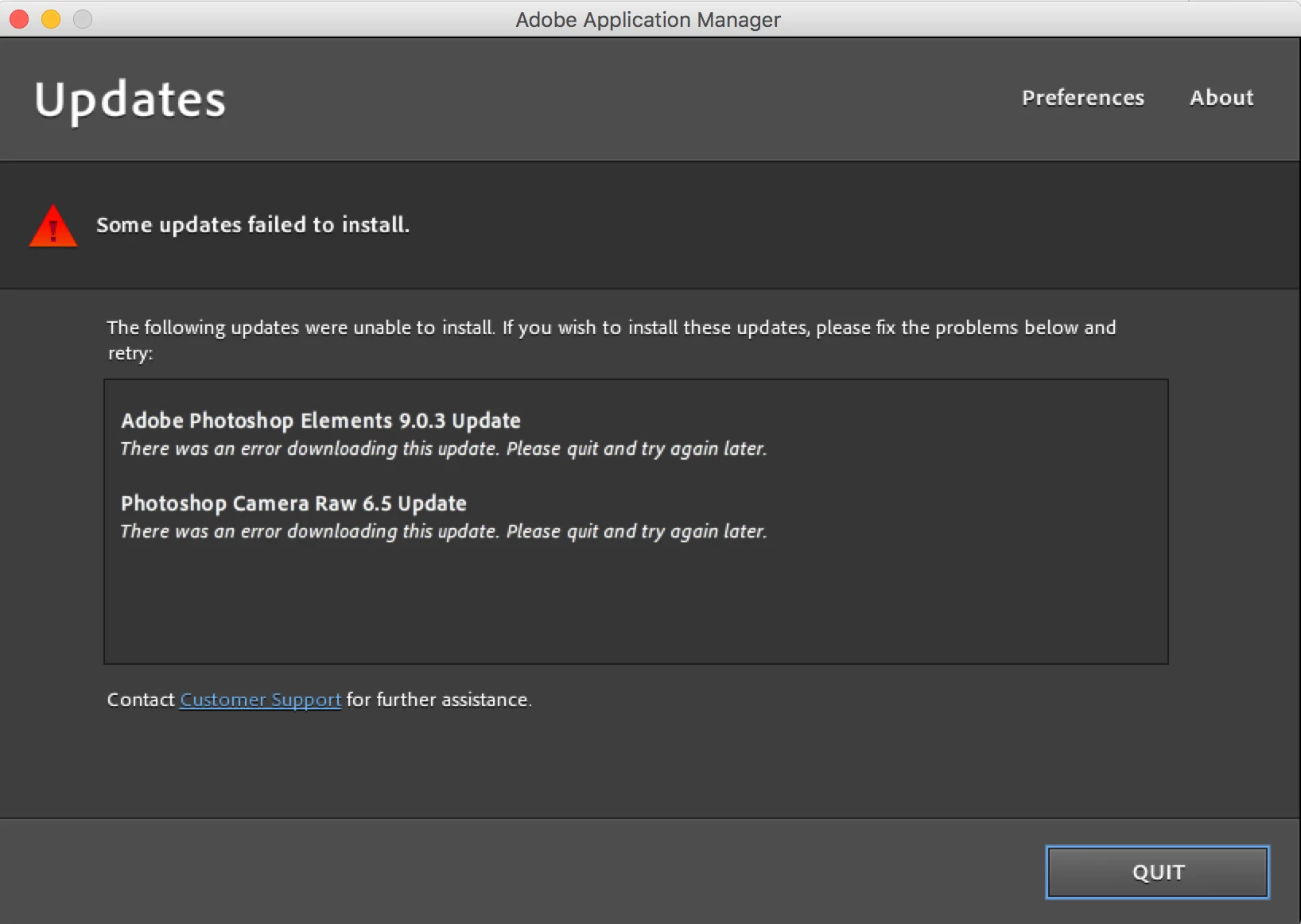 My PSE 9.0 isn't able to update, and says "some updates failed to install."