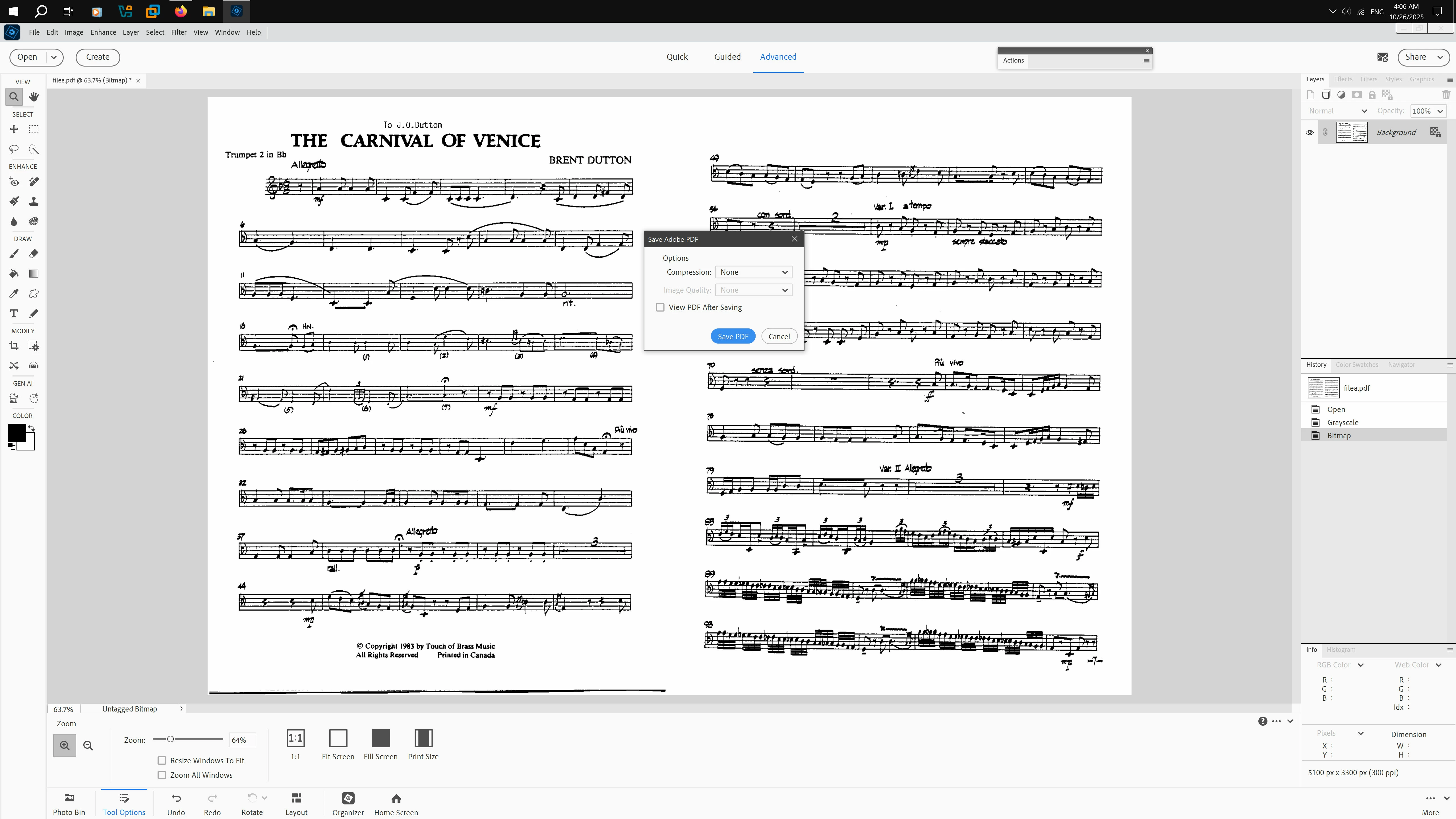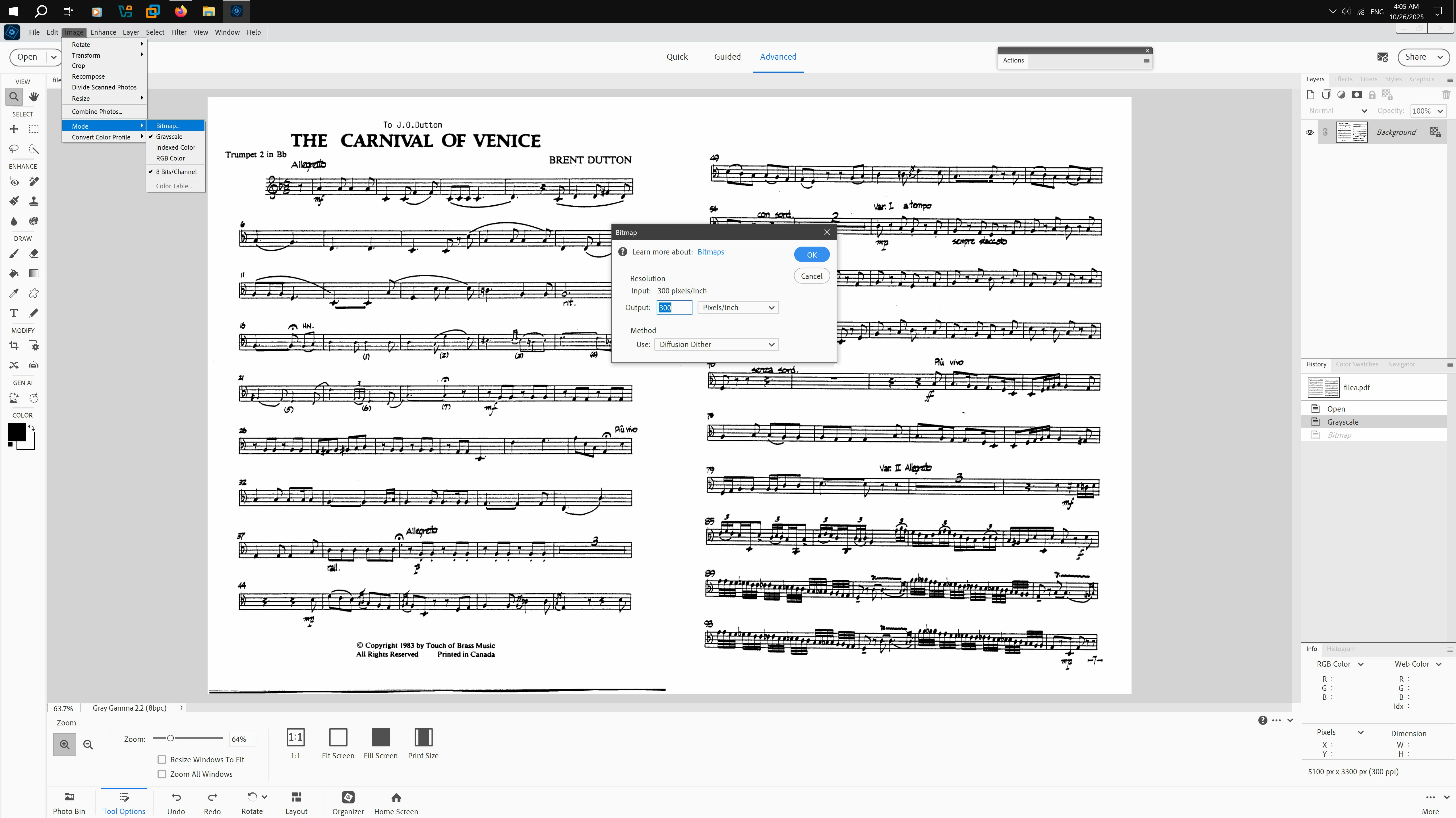 I have used PSE (Photoshop Elements) over many years for reconfiguring music for large pages. I have used the bitmap function in PSE to condense the resulting pdf files. The last PSE version that actually successfully condensed a pdf file was PSE10 - typically a factor of almost 10x reduction in size. I was hoping that Adobe would sustain this feature of bitmap in later versions, but once again, PDE 2025 does not condense pdf files, in some cases the bitmap function actually increases the pdf file size!. Can someone at Adobe look into this "loss of function" of bitmap in the PSE package since PSE10?