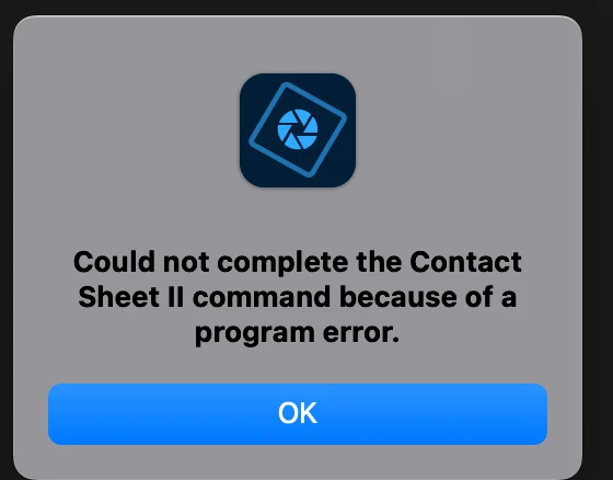 Yesterday eveing I was using the Contact Sheet II feature and it was working as expected for the hours I was working. I just had a few moe to create before calling it a night and it suddenly came back with a program error. I did what I could to try and troubleshoot this, force quit the program, deleted the preferences, restarted my computer (macbook). I then completely uninstalled PSE and reinstalled.
