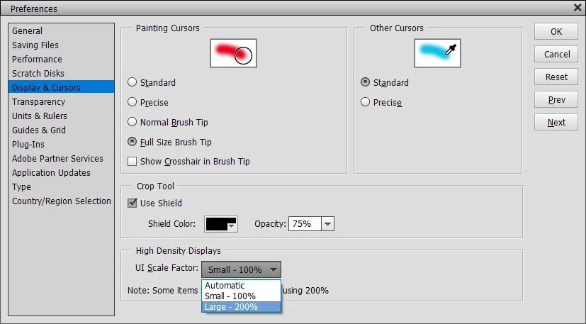 Photoshop Elements work-space screen setting for text is small. I need the text displays and image thumbnails display information (ex. for menu bar, left panel with list of my albums and folders) to be enlarge. I have eye problems and looking for the folders names and/or display information is very difficult. Can you help enlarge the Photoshop elements software display information? I have the windows icon on the desktop large, but the Photoshop Elements work-space information screen is to small.