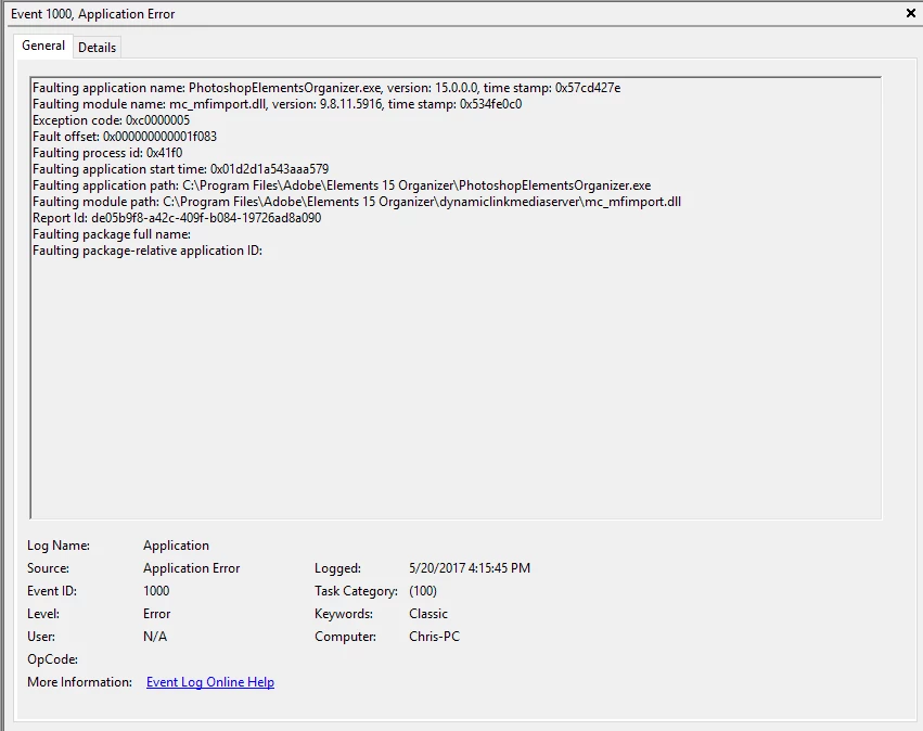 chrisw94200084ParticipantForum|Forum|8 years agoMay 20, 2017QuestionPSE15 & 14 crashesForum|Forum|8 years agoMay 20, 20171 reply198 viewsAnyone have a solution? Crashes on open.