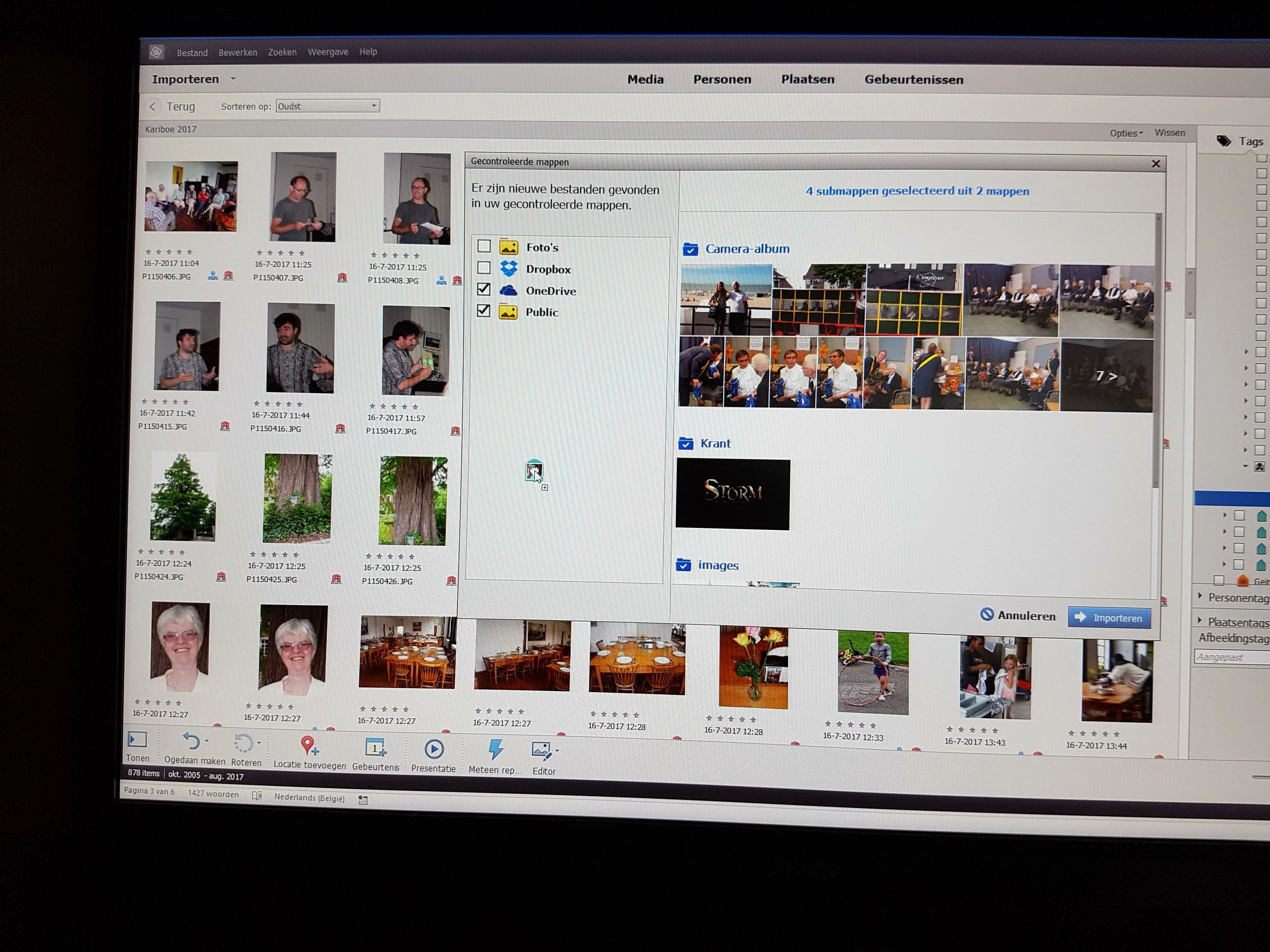 Tijdens het verplaatsen van een foto (via ingedrukte linkermuisknop), bvb. naar de PRE15-window, werd de pop-up-window weergegeven met nieuwe bestanden die gevonden werden in de gecontroleerde mappen.