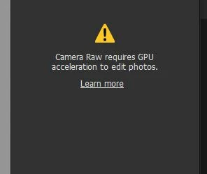 RAW used to work, now I get a message saying '! Camera RAW requires GPU acceleration'