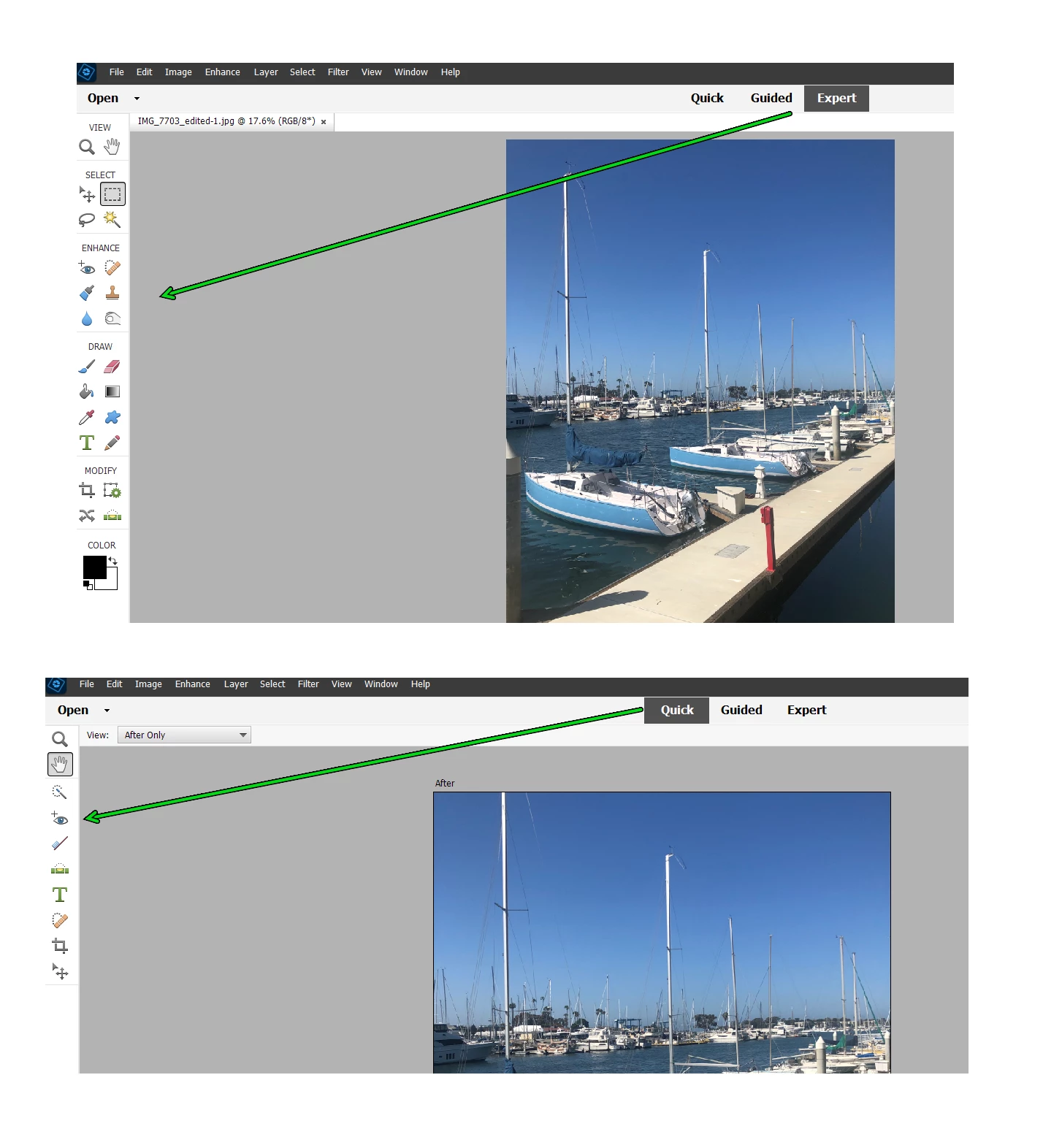 Adobe really layed an egg by screwing up Elments, it no longer looks anything like photoshop of the old days. Where the two interfaces were basically the same, just missing some of the advance tools.